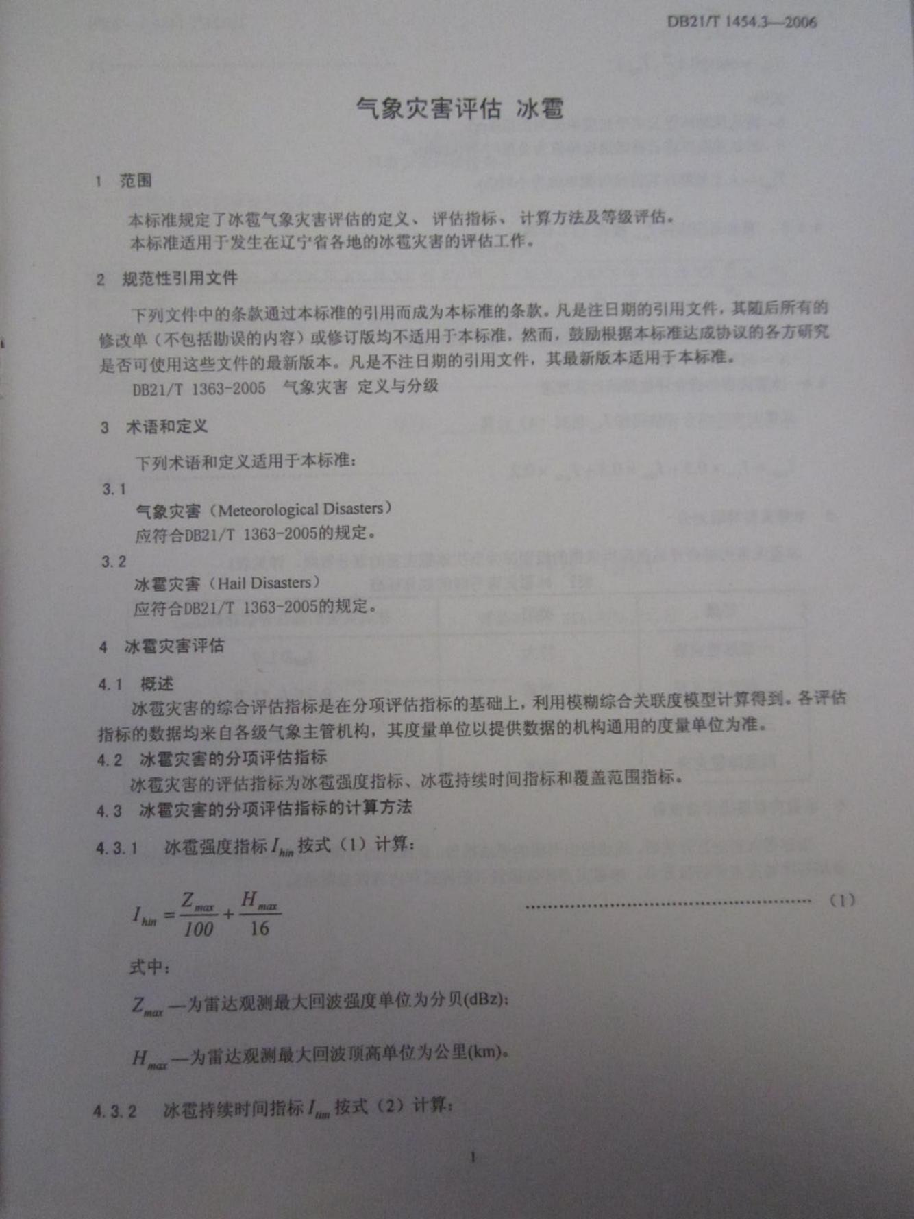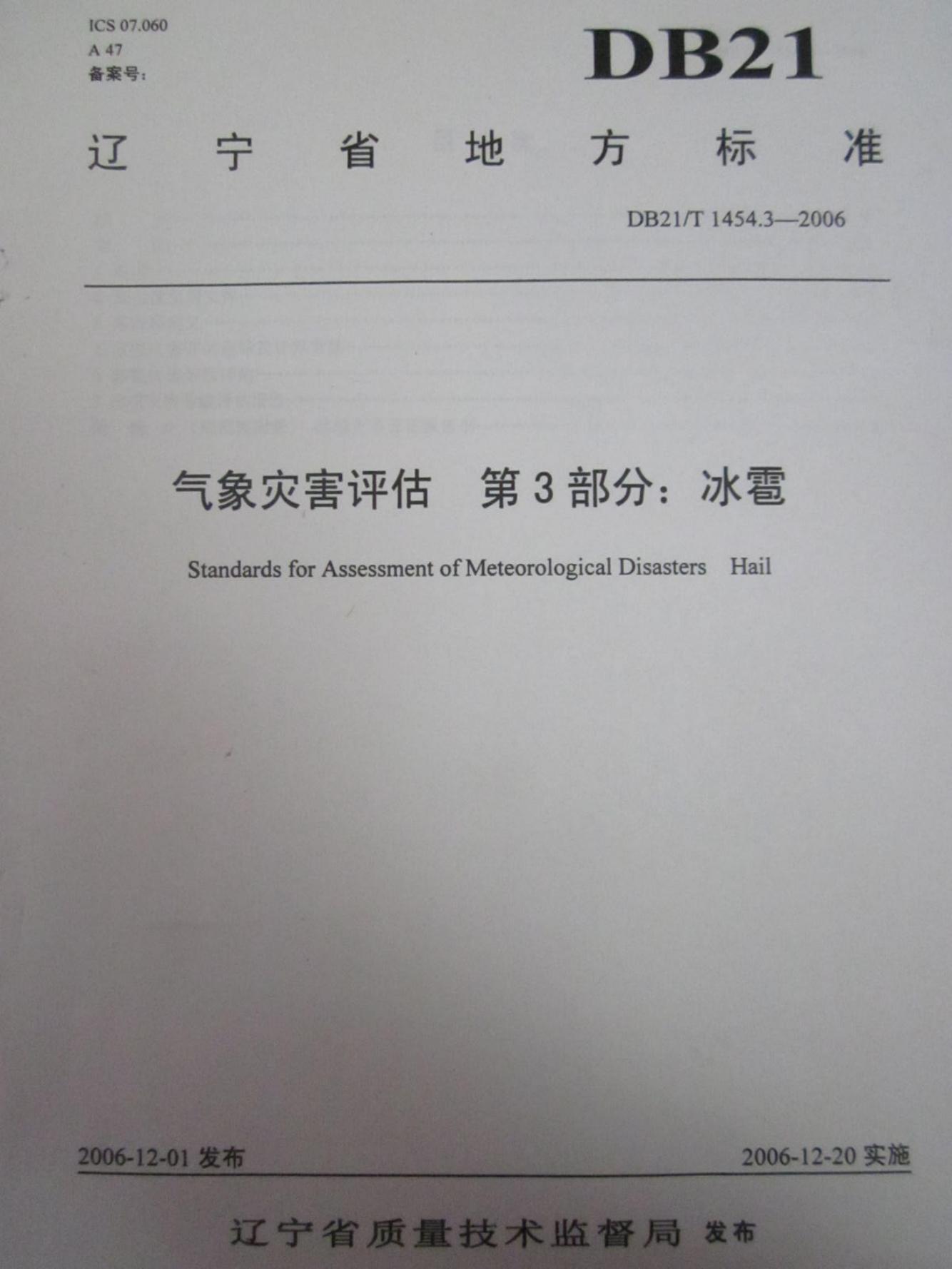 DB21/T 1454.3-2006 气象灾害评估 第3部分:冰雹