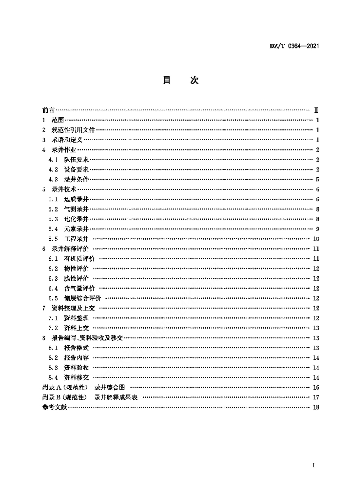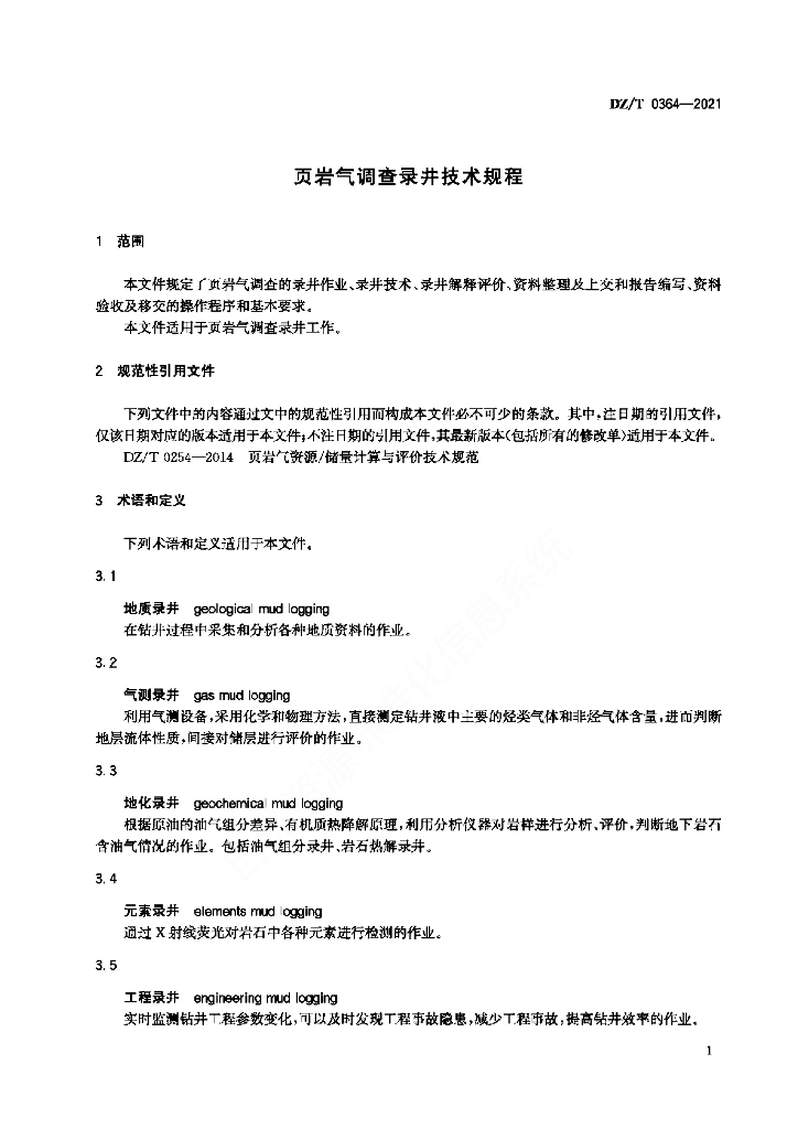 DZ/T 0364-2021 页岩气调查录井技术规程