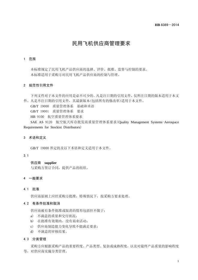 HB 8389-2014(2017) 民用飞机供应商管理要求