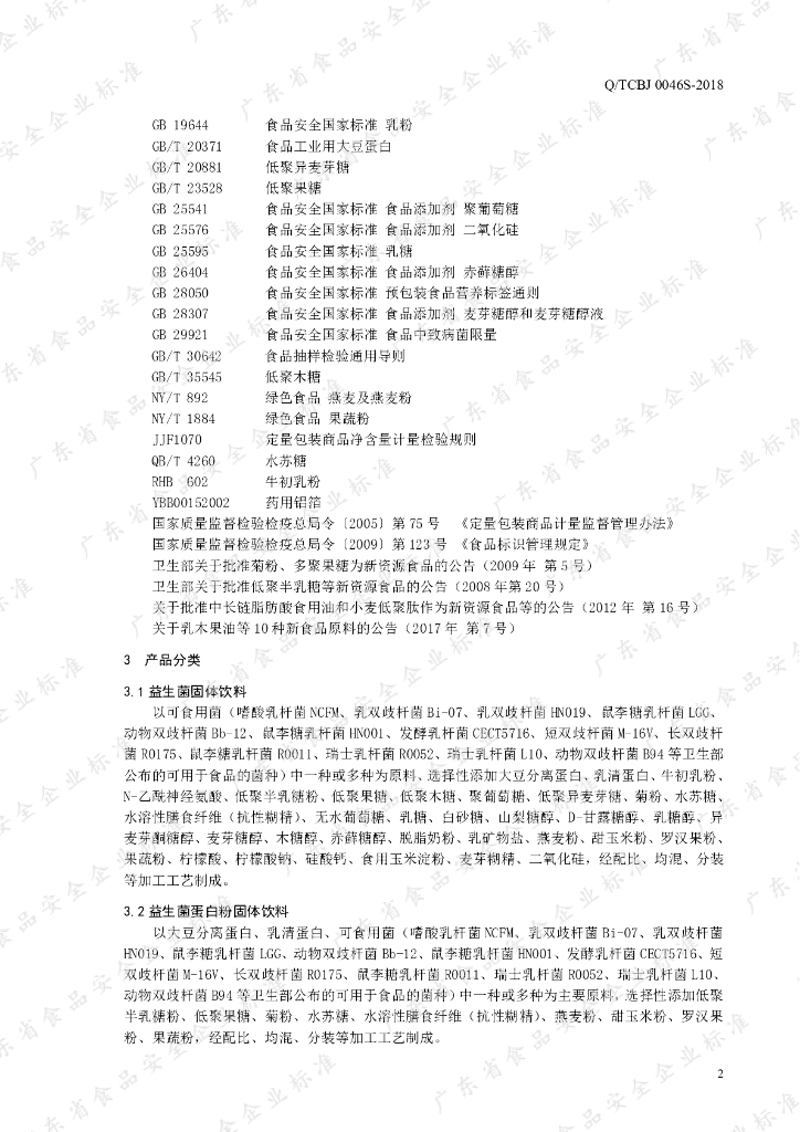 Q/TCBJ 0046S-2018 益生菌固体饮料
