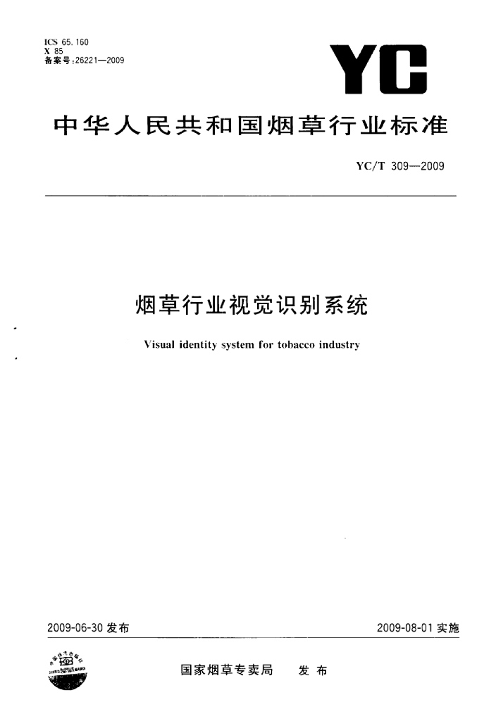 YC/T 309-2009 烟草行业视觉识别系统
