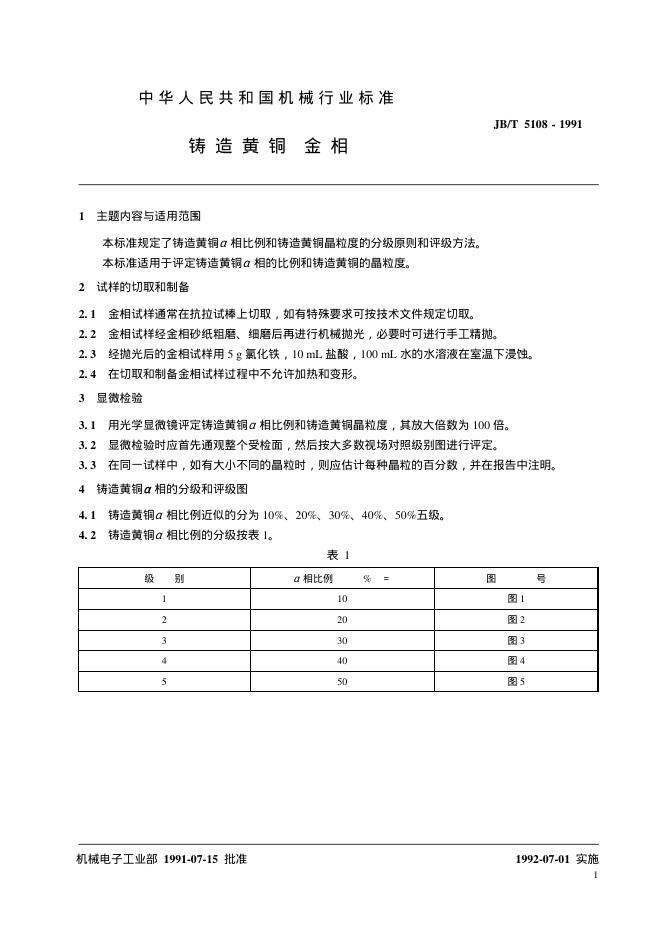 JB/T 5108-1991 铸造黄铜 金相