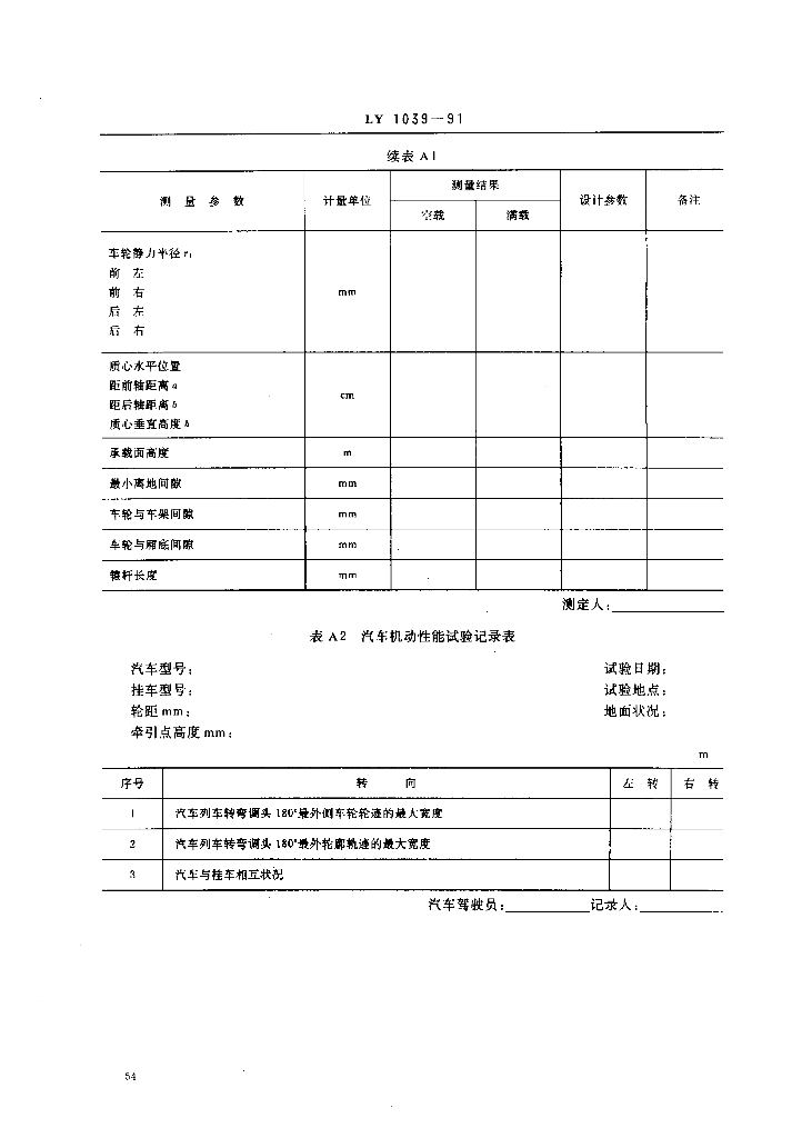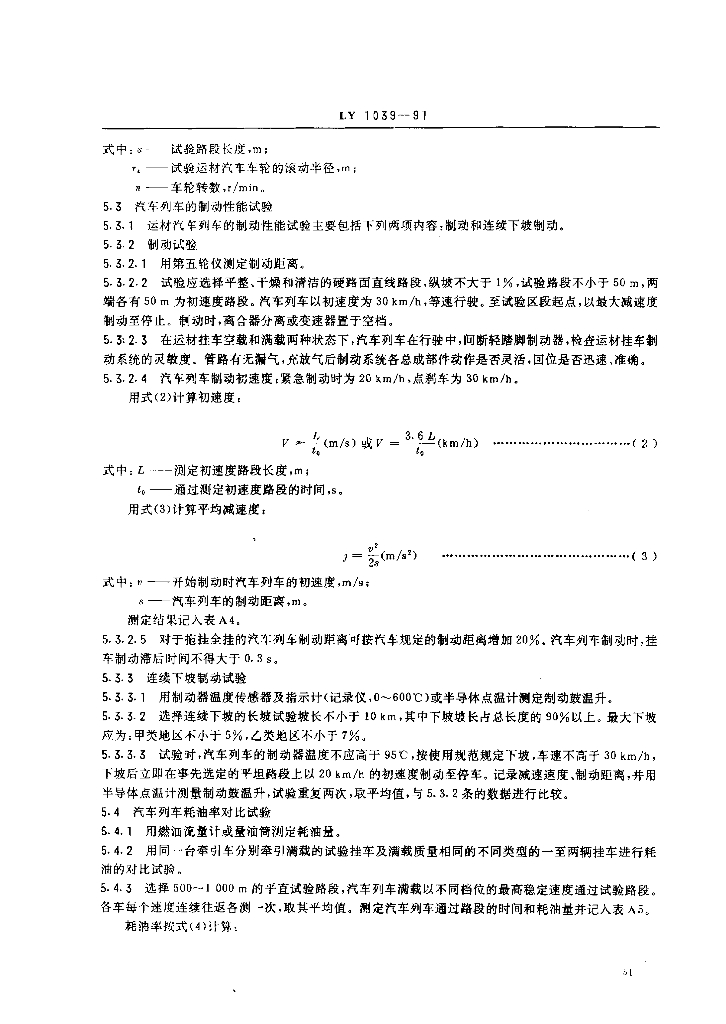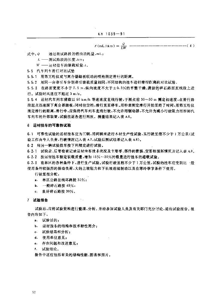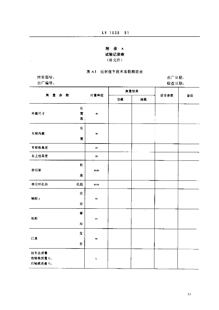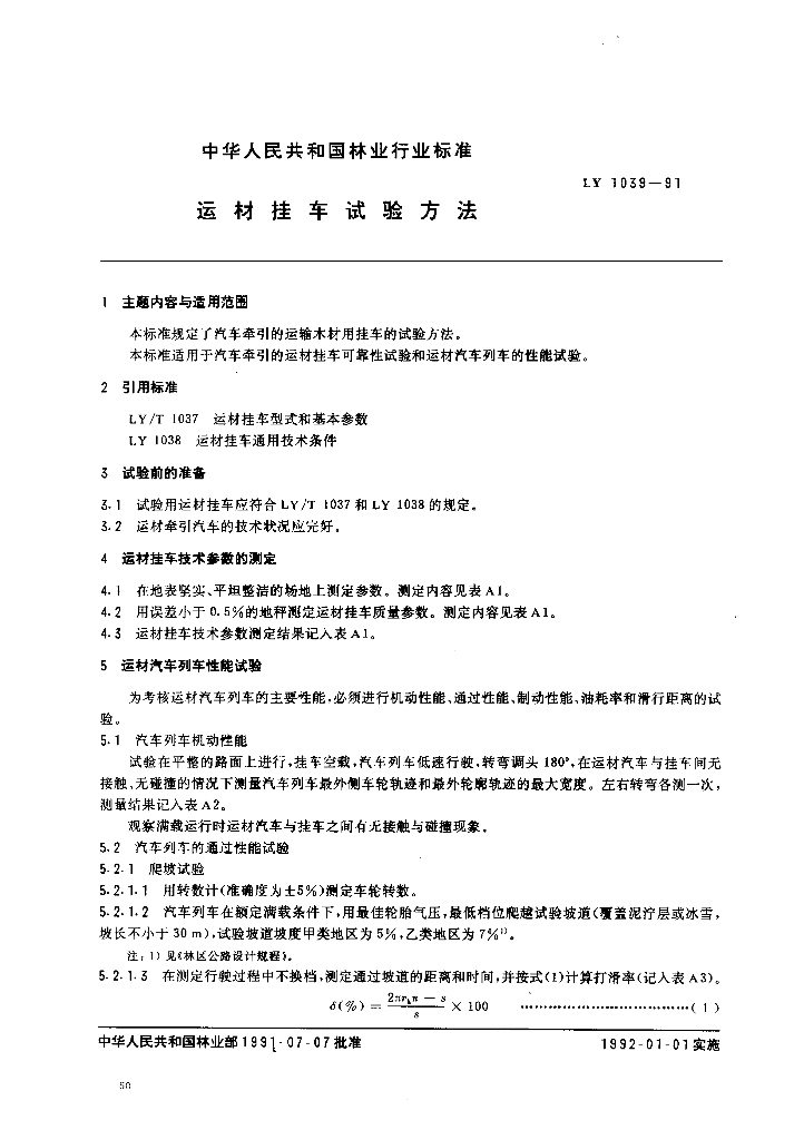 LY 1039-1991 运材挂车试验方法