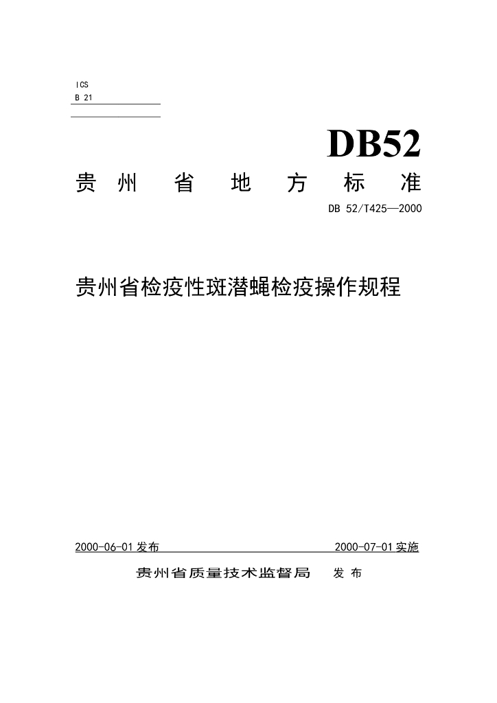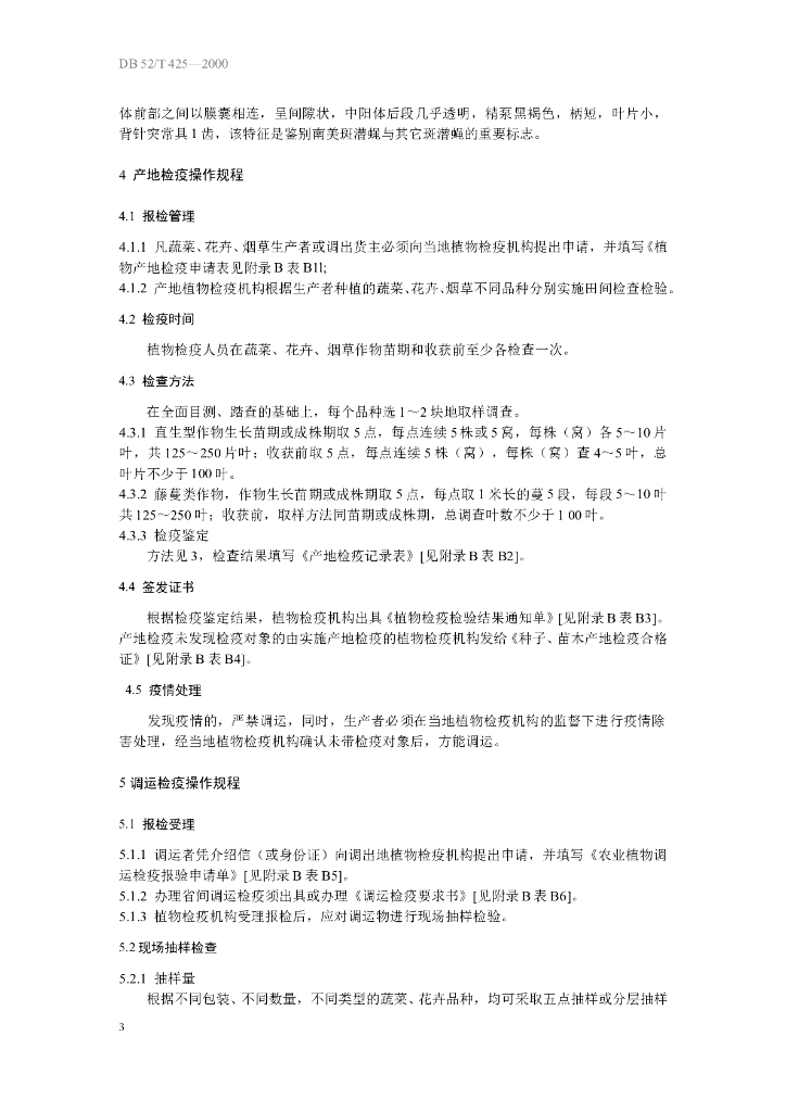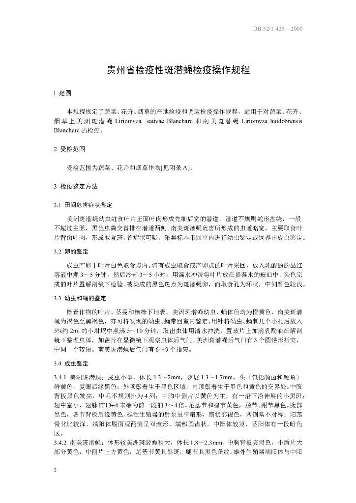 DB52/ 425-2000 贵州省检疫性斑潜蝇检疫操作规程
