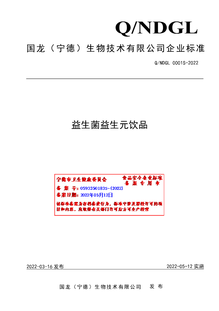 Q/NDGL 0001S-2022 益生菌益生元饮品