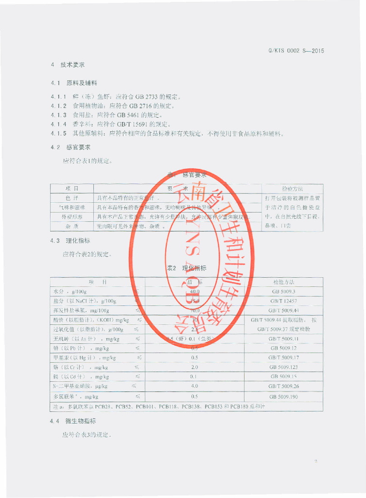 Q/KTS 0002S-2015 昆明市官渡区添顺食品加工厂 风味鱼(虾)