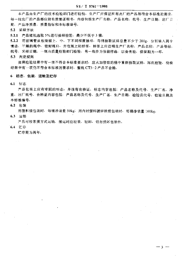 SY/T 5761-1995 排水采气用起泡剂CT5-2