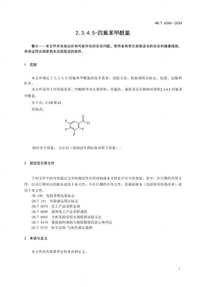 HG/T 6336-2024 2,3,4,5-四氟苯甲酰氯