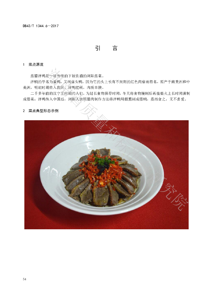 DB43/T 1344.6-2017 浏阳蒸菜 第6部分:蒸腊洋鸭