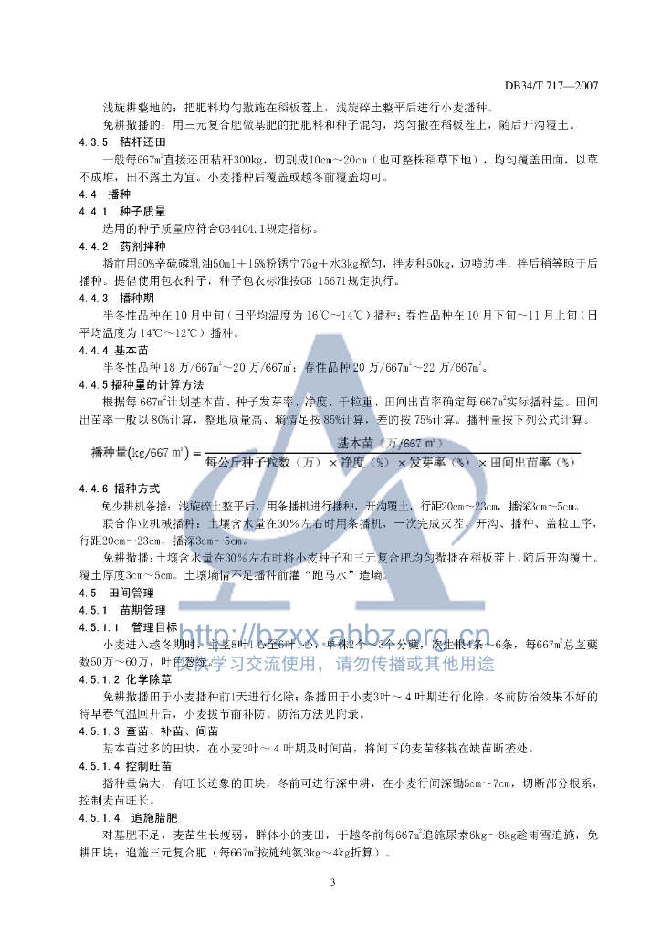 DB34/T 717-2007 稻茬麦高产栽培技术规程