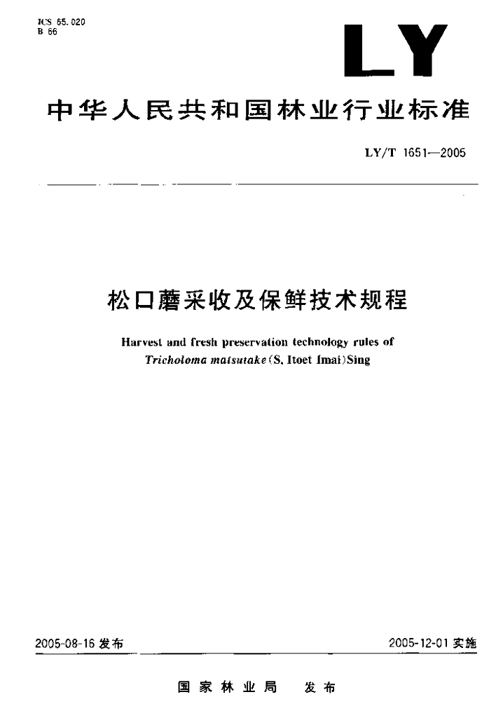 LY/T 1651-2005 松口蘑采收及保鲜技术规程