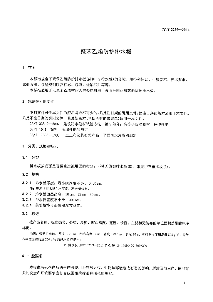 JC/T 2289-2014 聚苯乙烯防护排水板