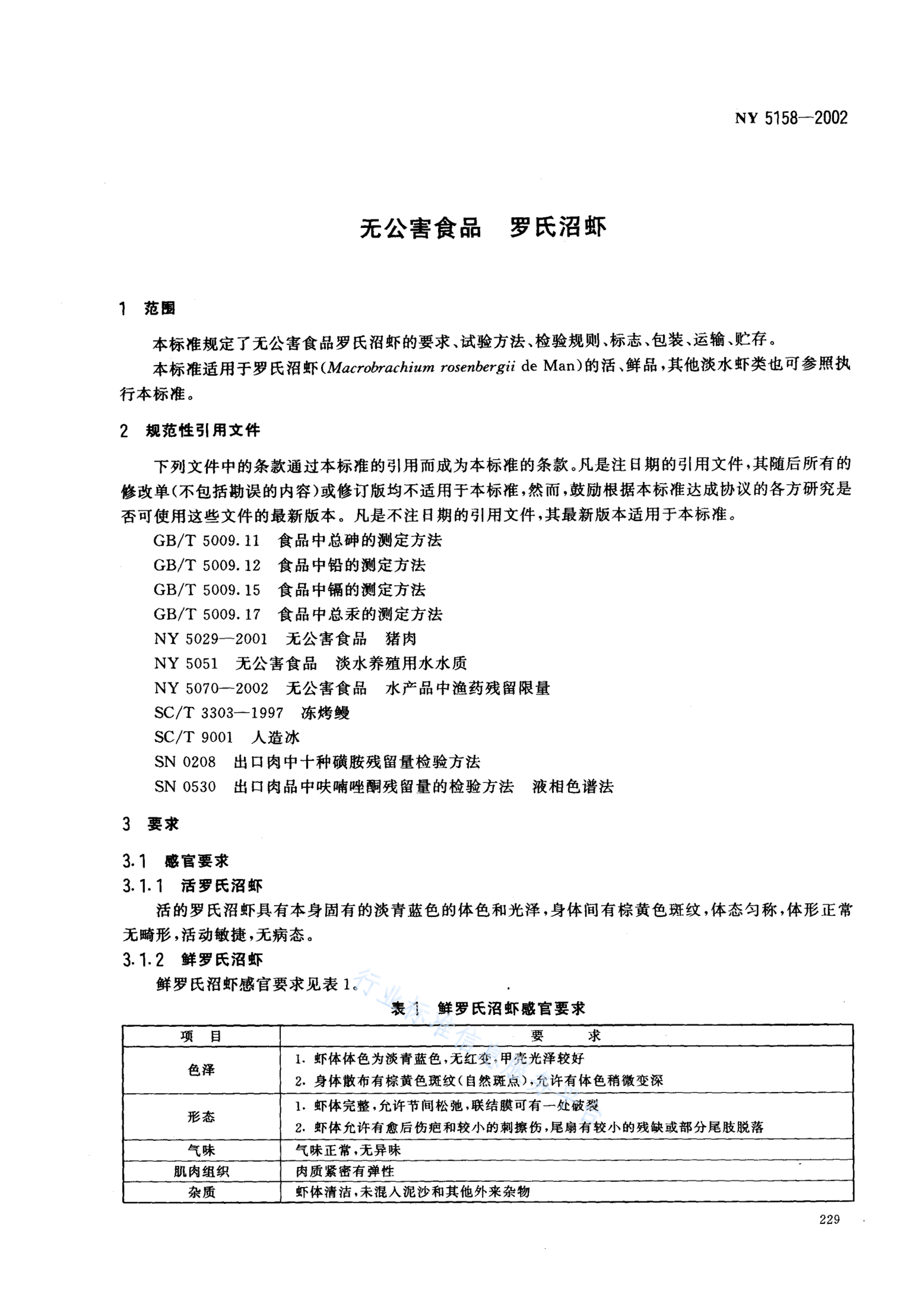 NY 5158-2002 无公害食品 罗氏沼虾