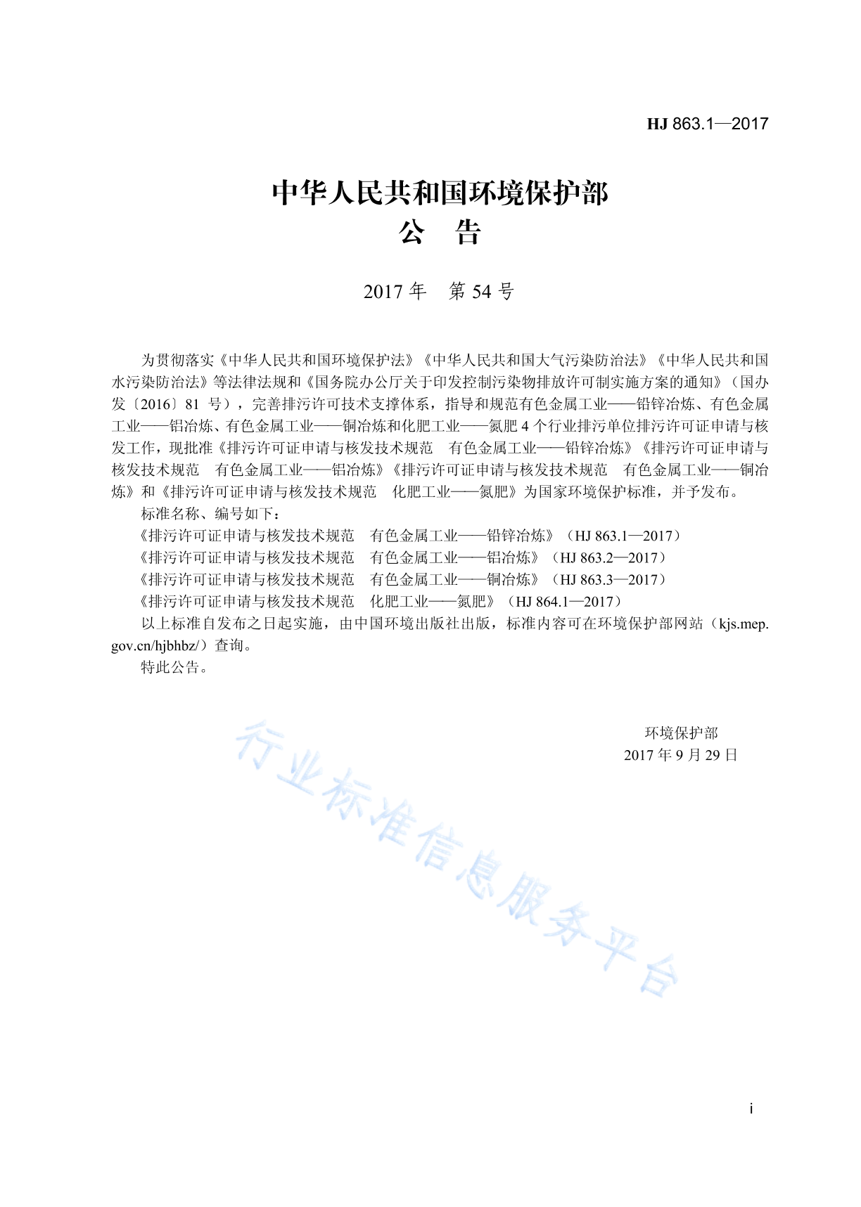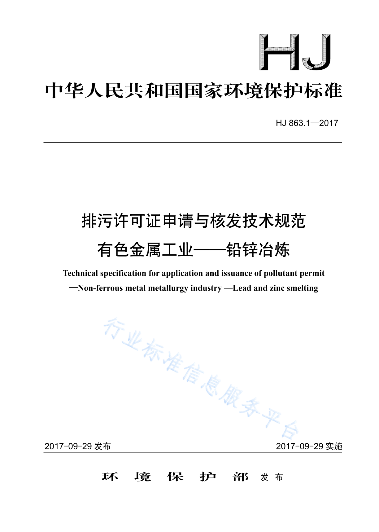 HJ 863.1-2017 排污许可证申请与核发技术规范 有色金属工业-铅锌冶炼