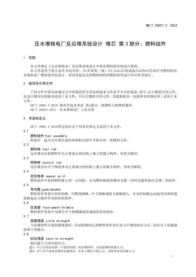NB/T 20057.3-2023 压水堆核电厂反应堆系统设计 堆芯 第3部分:燃料组件
