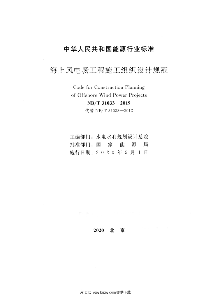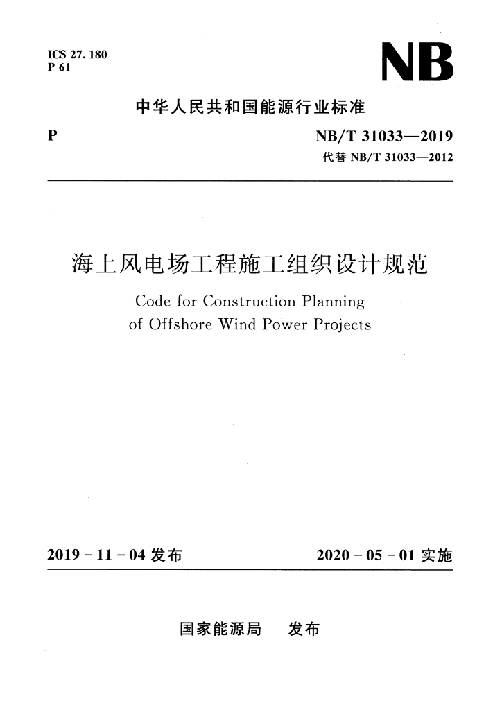 NB/T 31033-2019 海上风电场工程施工组织设计规范