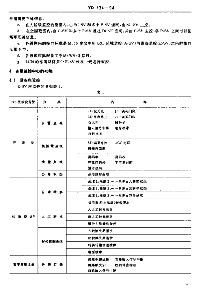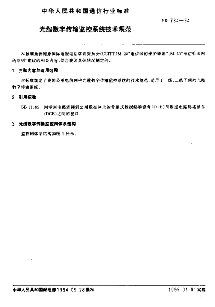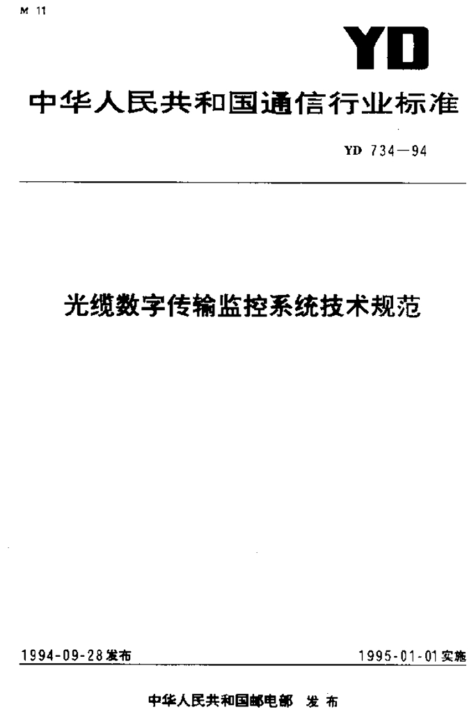 YD 734-1994 光缆数字传输监控系统技术规范
