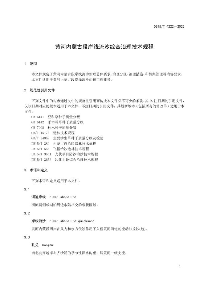 DB15/T 4222-2025 黄河内蒙古段岸线流沙综合治理技术规程
