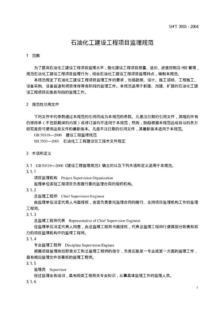 SH/T 3903-2004 石油化工建设工程项目监理规范