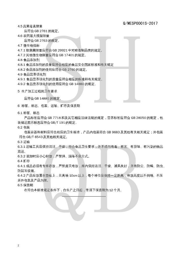 Q/MESP 0001S-2017 果蔬膨化谷物制品
