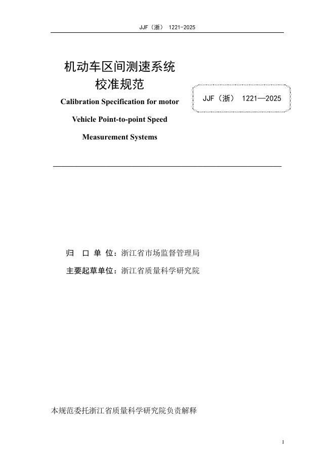 JJF(浙)1221-2025 机动车区间测速系统校准规范