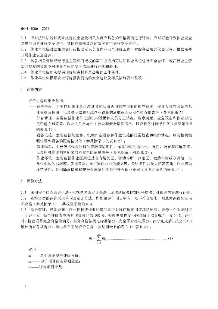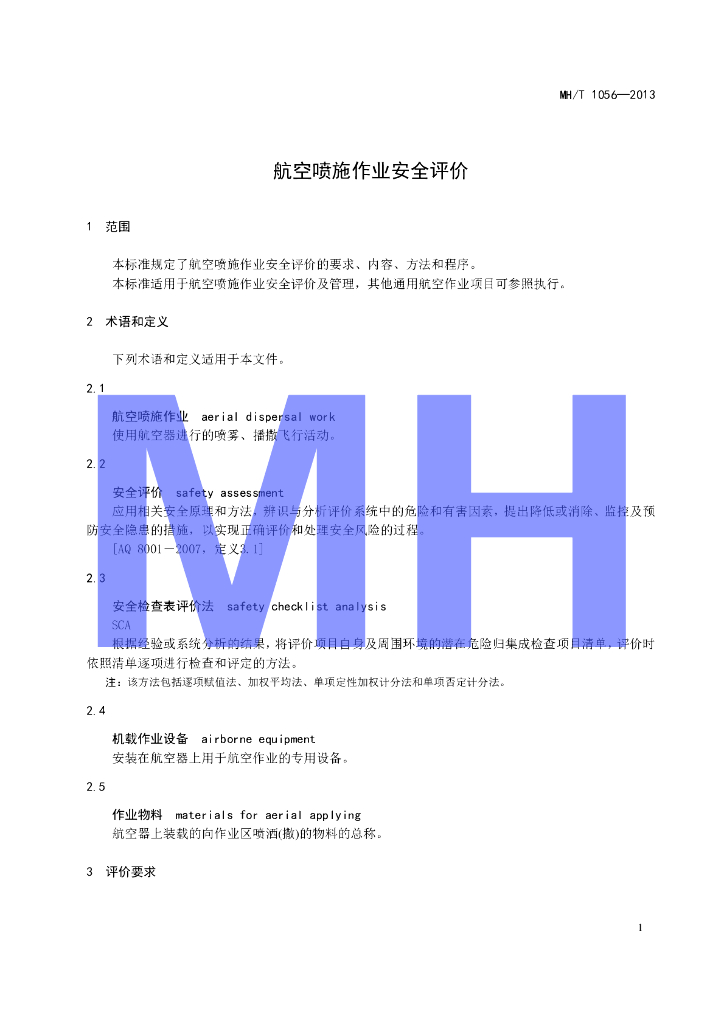 MH/T 1056-2013 航空喷施作业安全评价