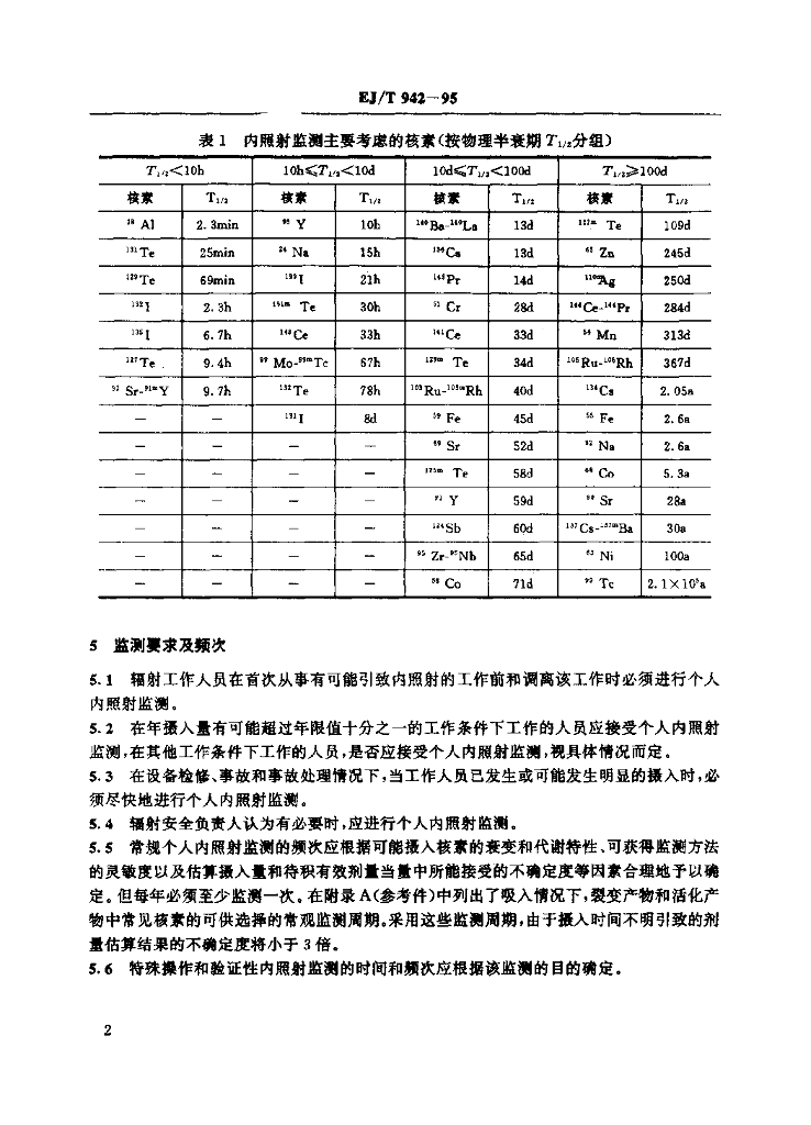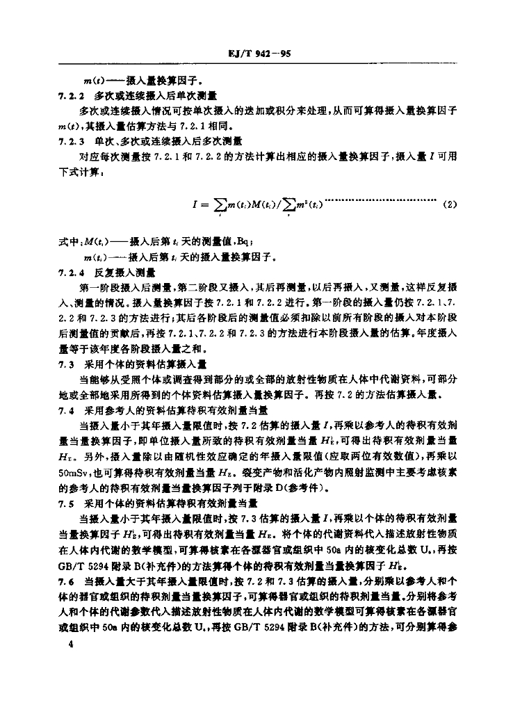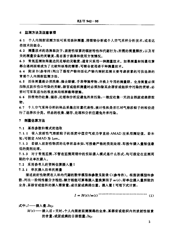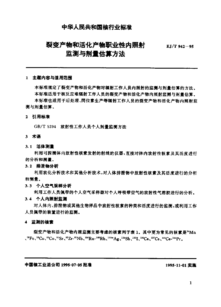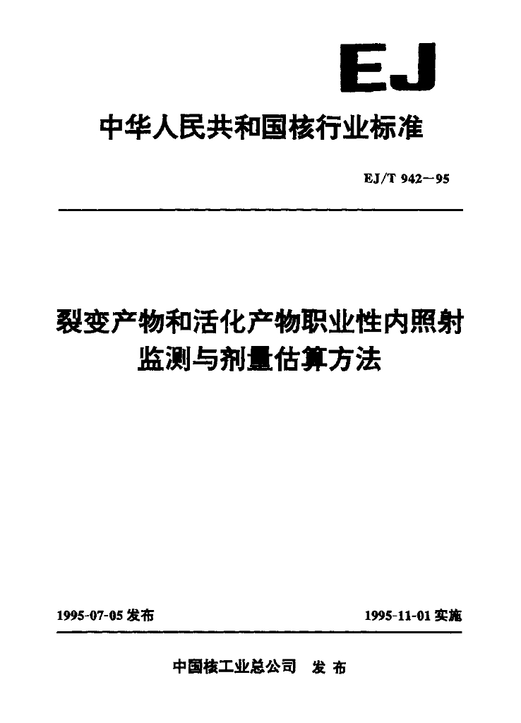 EJ/T 942-1995 裂变产物和活化产物职业性内照射监测与剂量估算方法