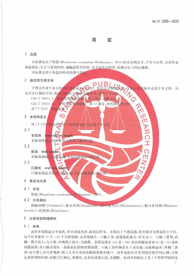 SC/T 2085-2020 海蜇