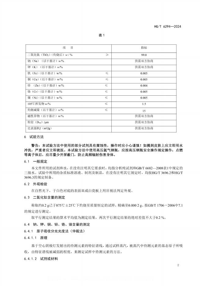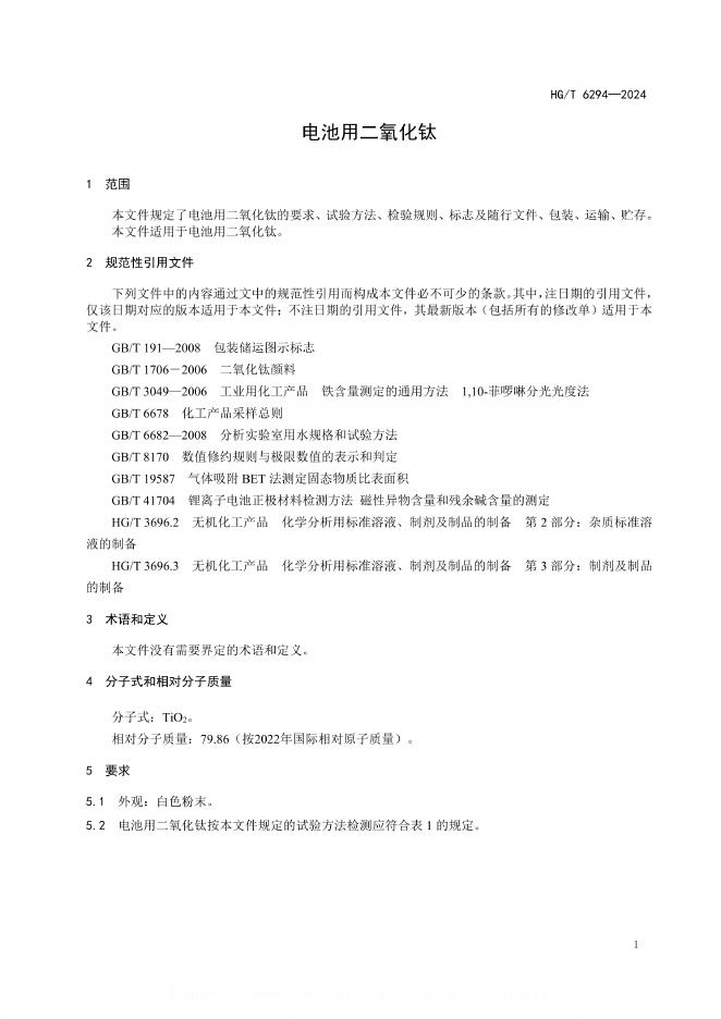 HG/T 6294-2024 电池用二氧化钛