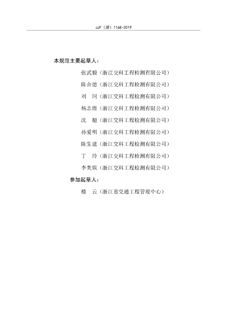 张武毅(浙江交科工程检测有限公司)、陈合德(浙江交科工程检测有限公司)、刘珂(浙江交科工程检测有限公司)、杨志煜(浙江交科工程检测有限公司)、沈超(浙江交科工程检测有限公司)、孙爱明(浙江交科工程检测有限公司)、陈生建(浙江交科工程检测有限公司)、丁玲(浙江交科工程检测有限公司)、李美娱(浙江交科工程检测有限公司)、楼云(浙江省交通工程管理中心)
