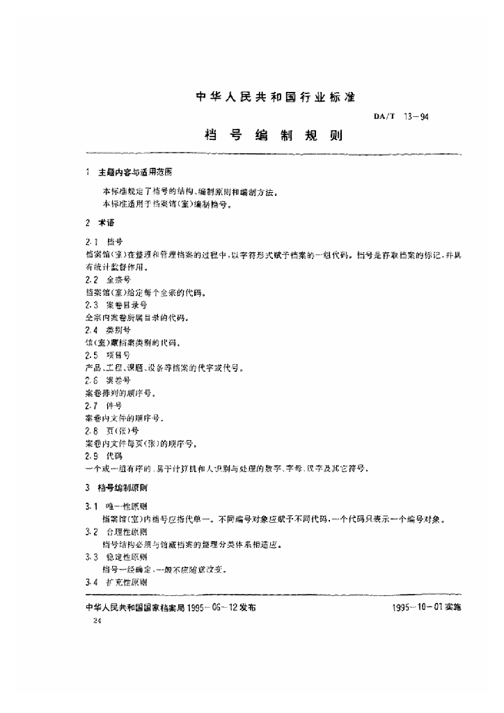 DA/T 13-1994 档案编制规则