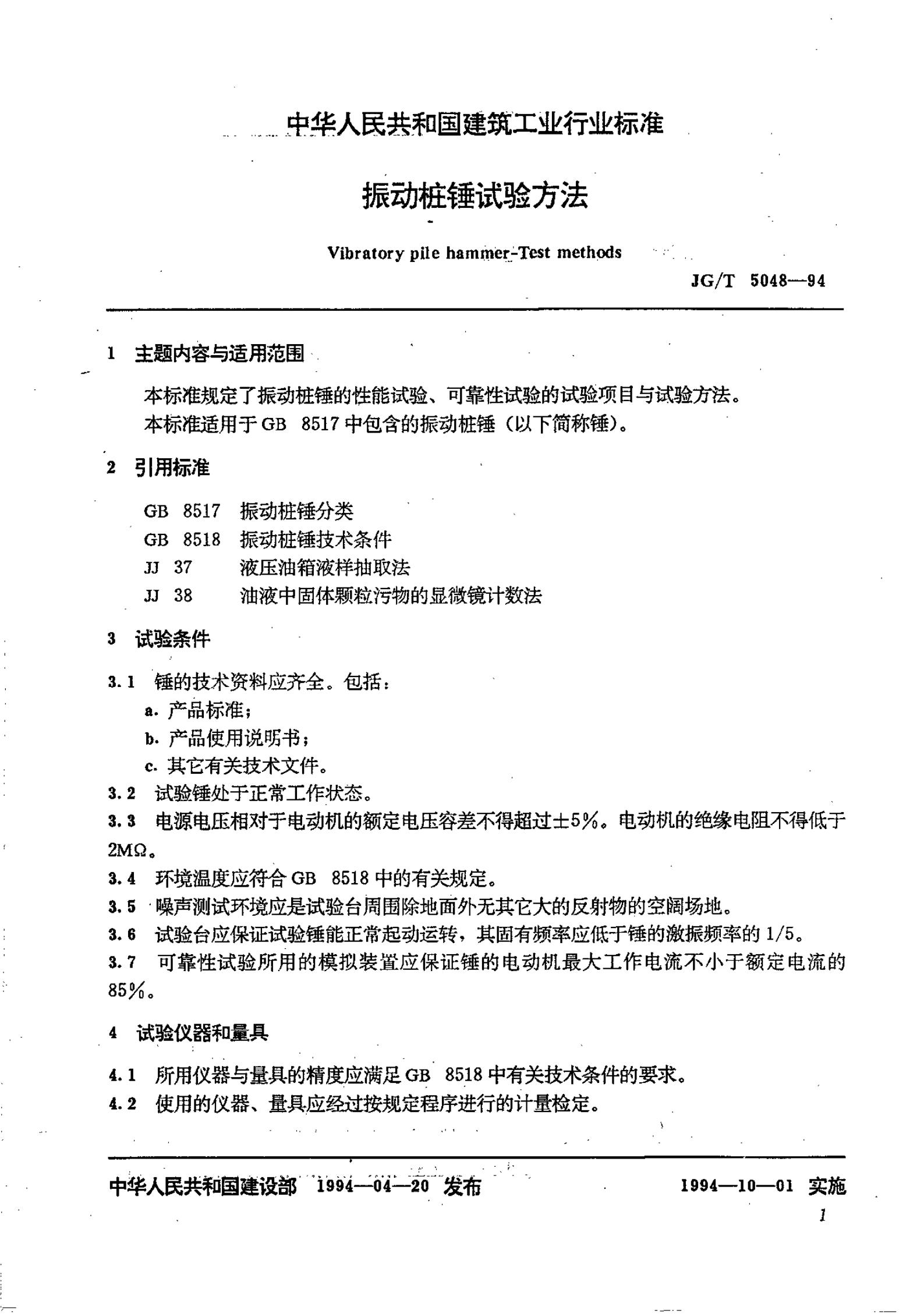 JG/T 5048-1994 振动桩锤试验方法