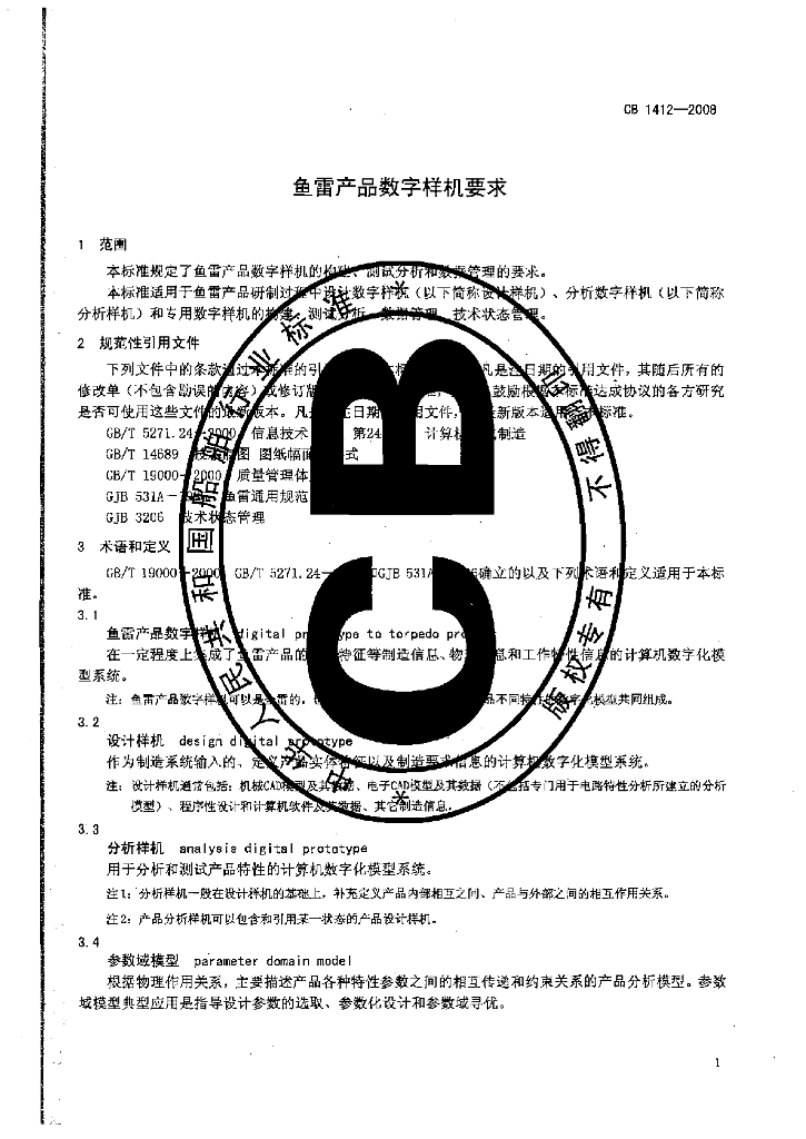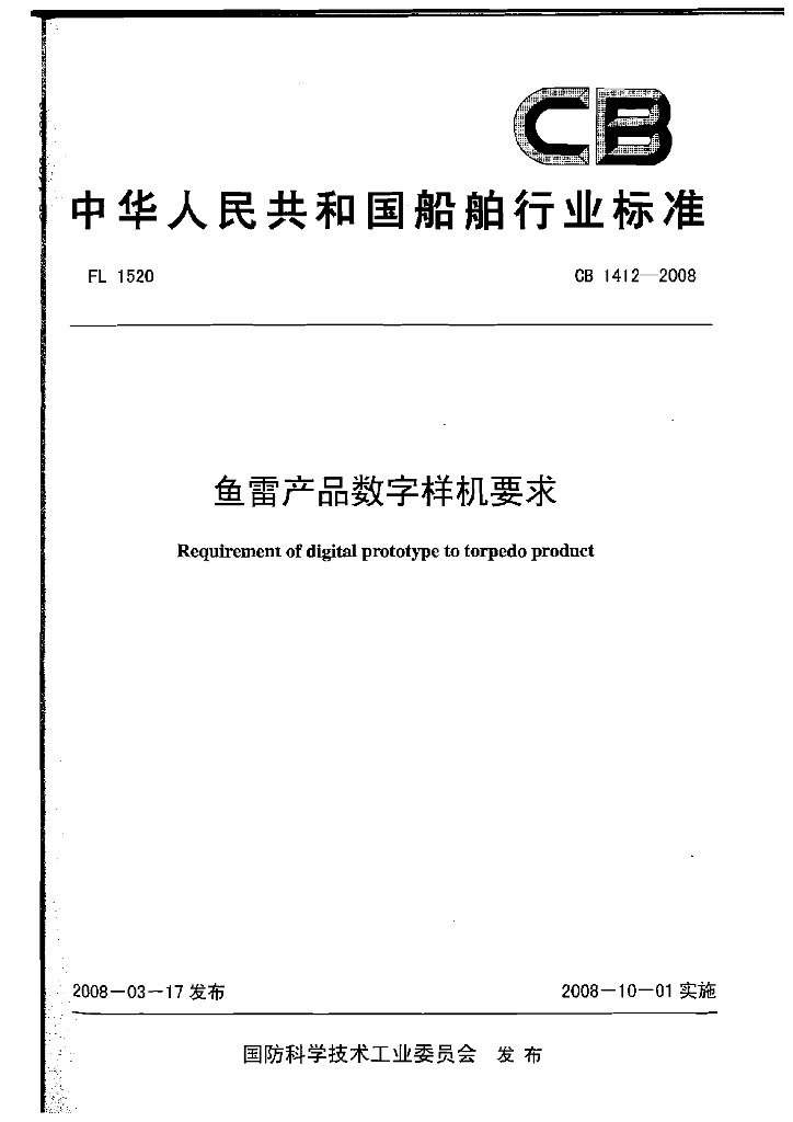 CB 1412-2008 鱼雷产品数字样机要求