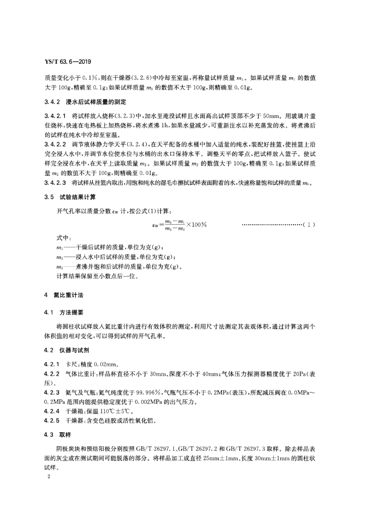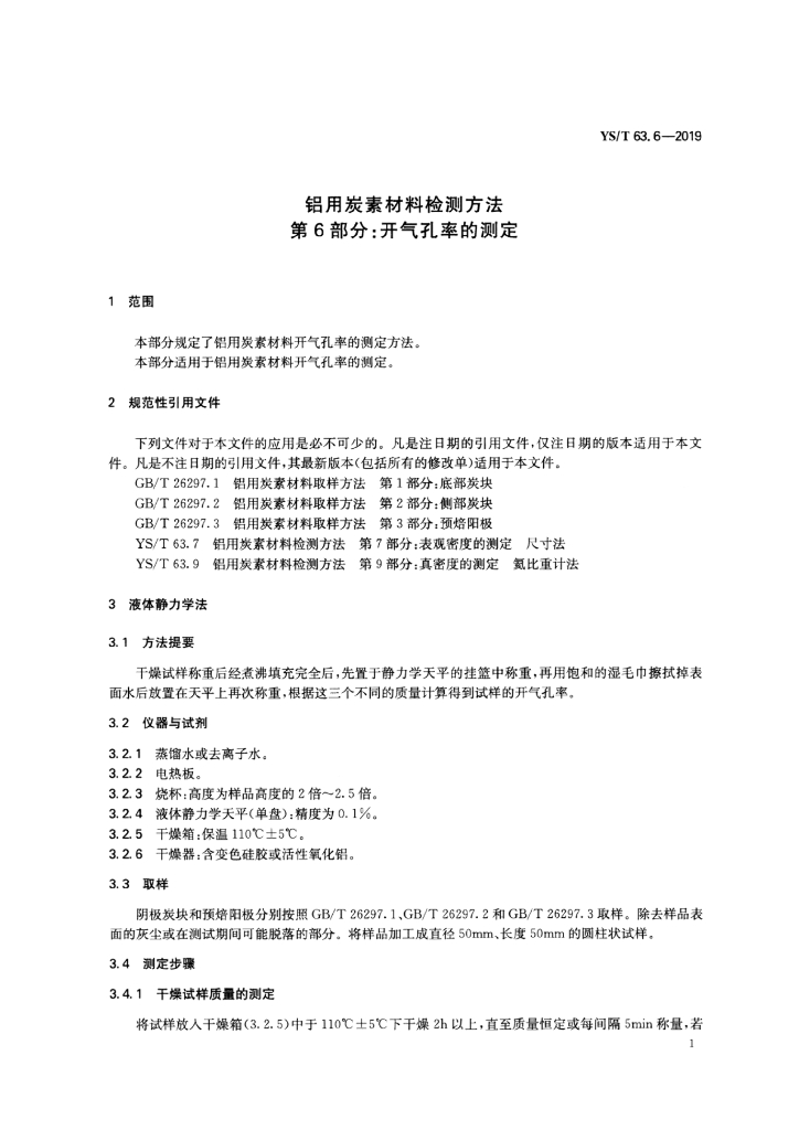 YS/T 63.6-2019 铝用炭素材料检测方法 第6部分:开气孔率的测定