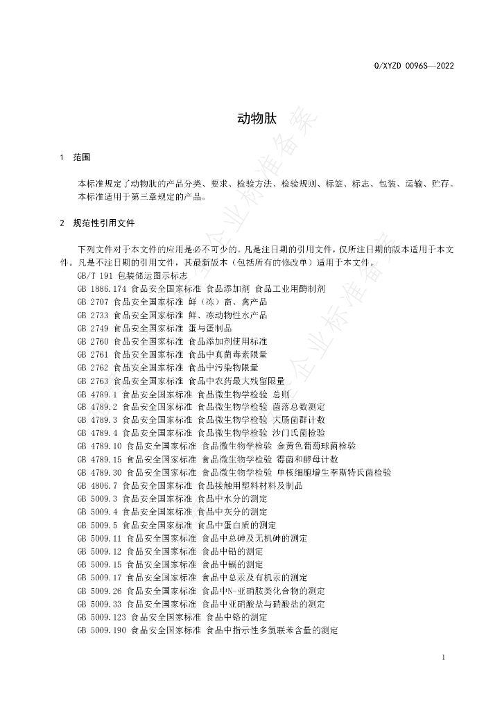 Q/XYZD 0096S-2022 动物肽