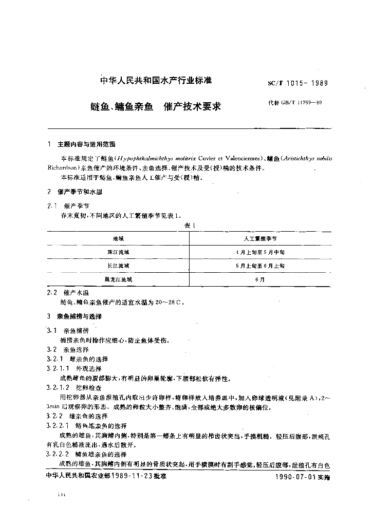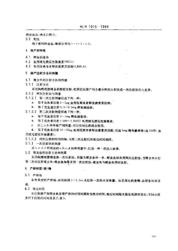 SC/T 1015-1989 鲢鱼、鳙鱼亲鱼 催产技术要求