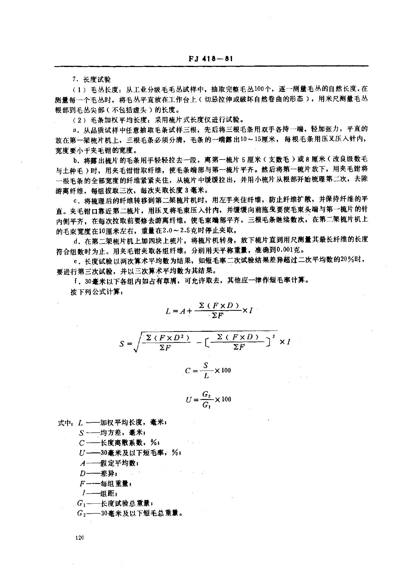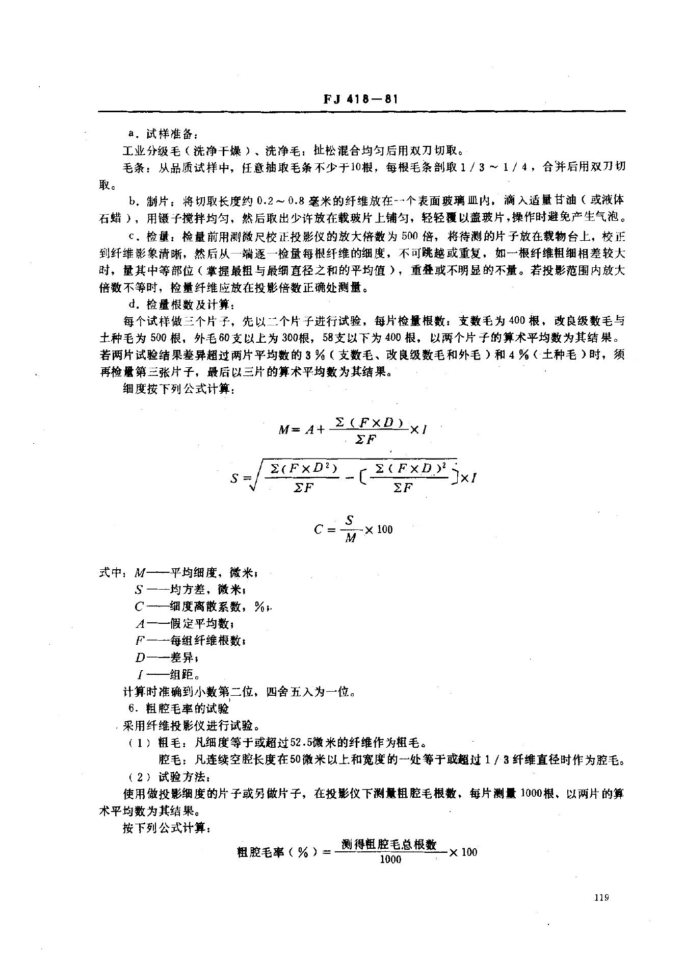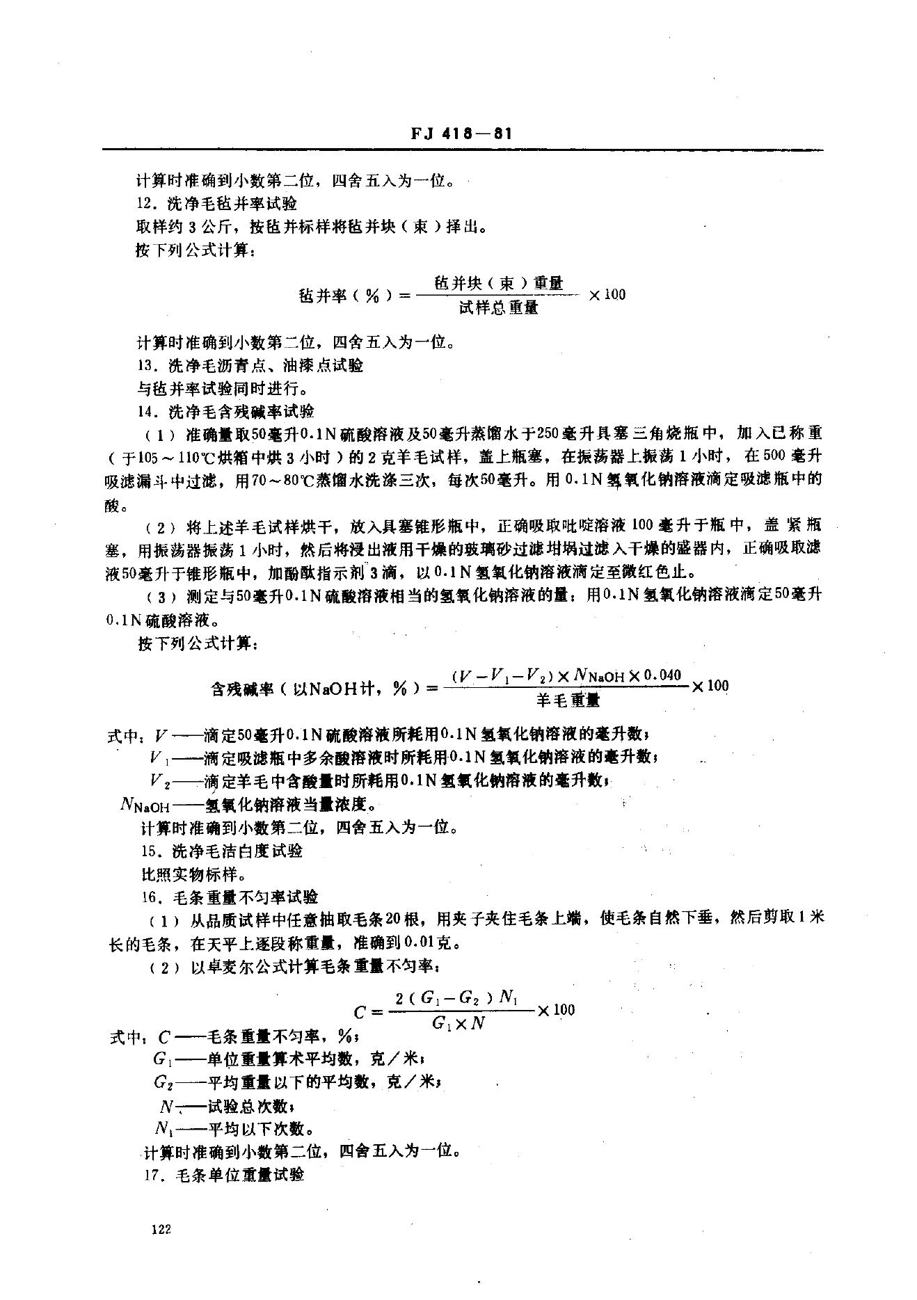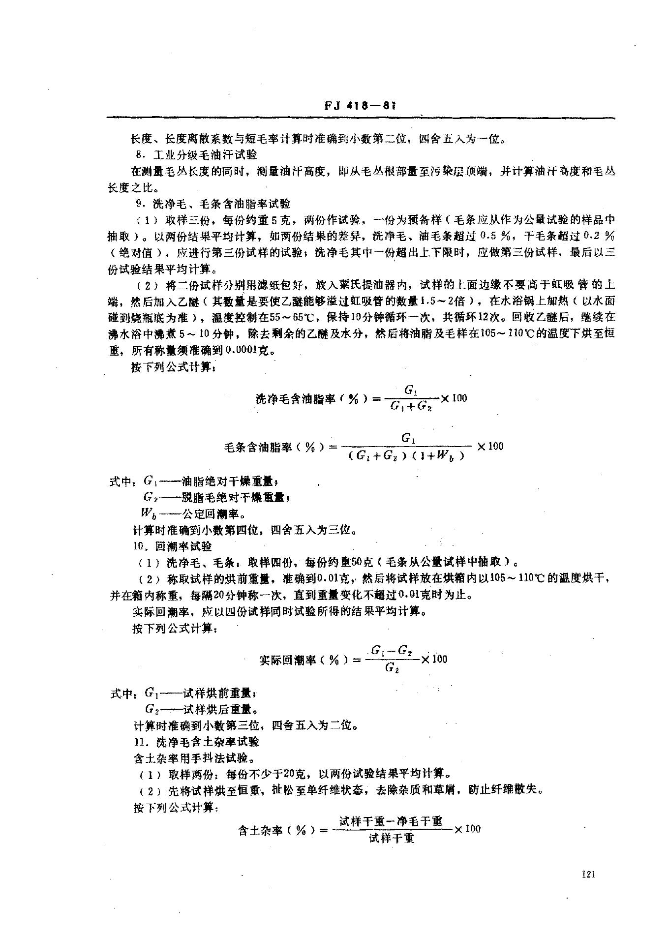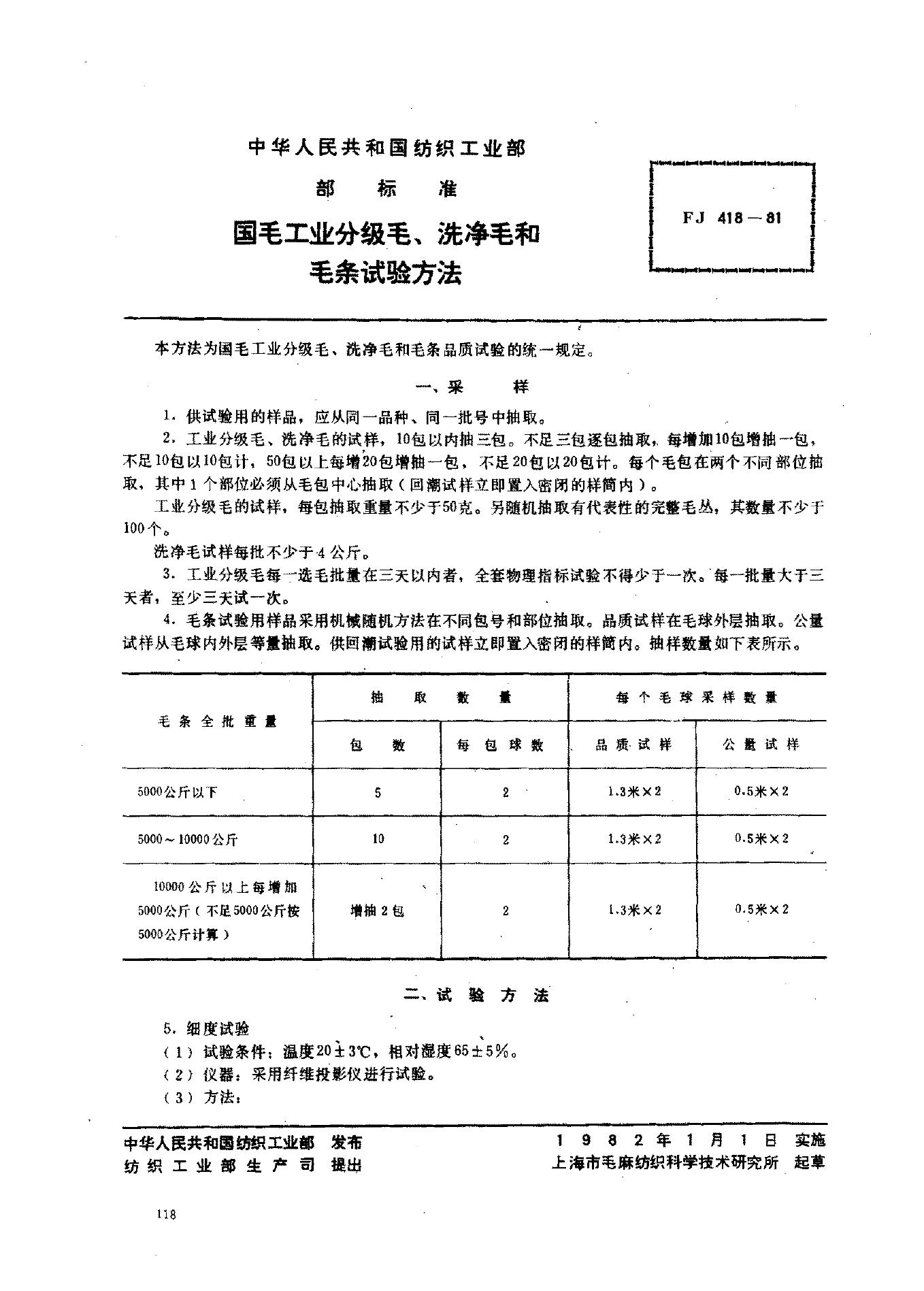FJ 418-1981 国毛工业分级毛、洗净毛和毛条试验方法