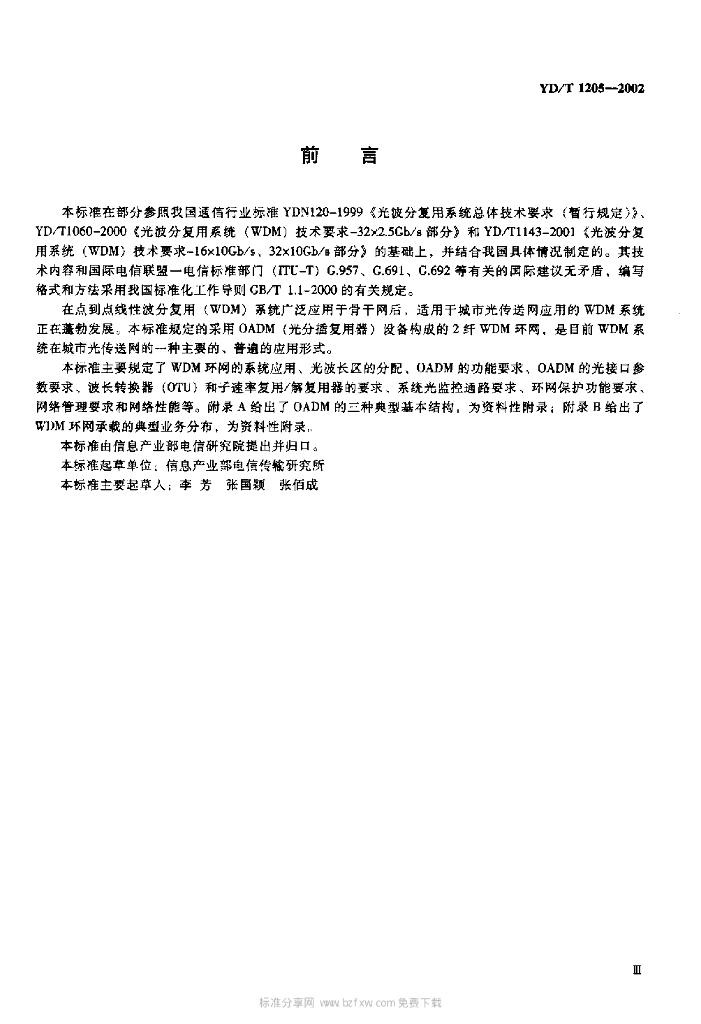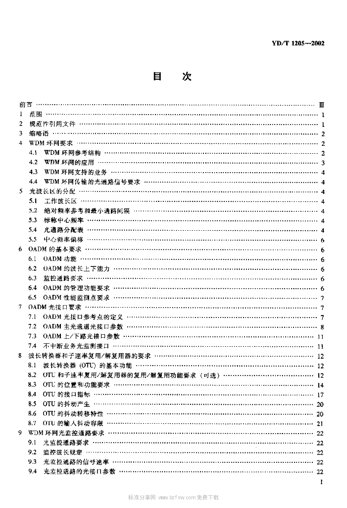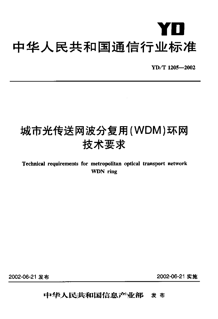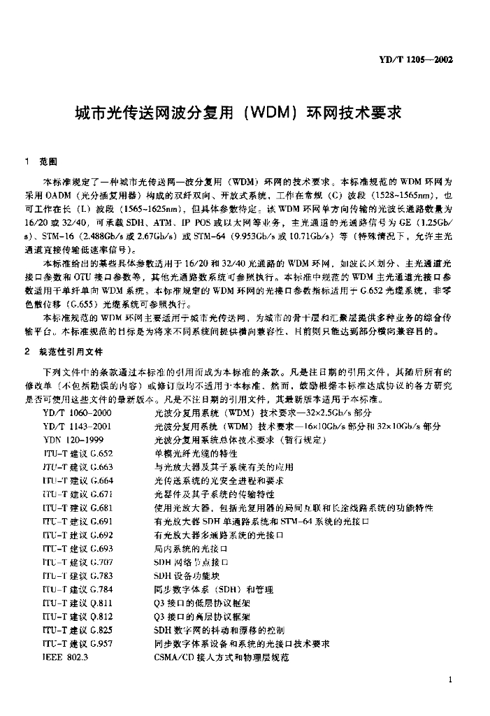 YD/T 1205-2002 城市光传送网波分复用(WDM)环网技术要求