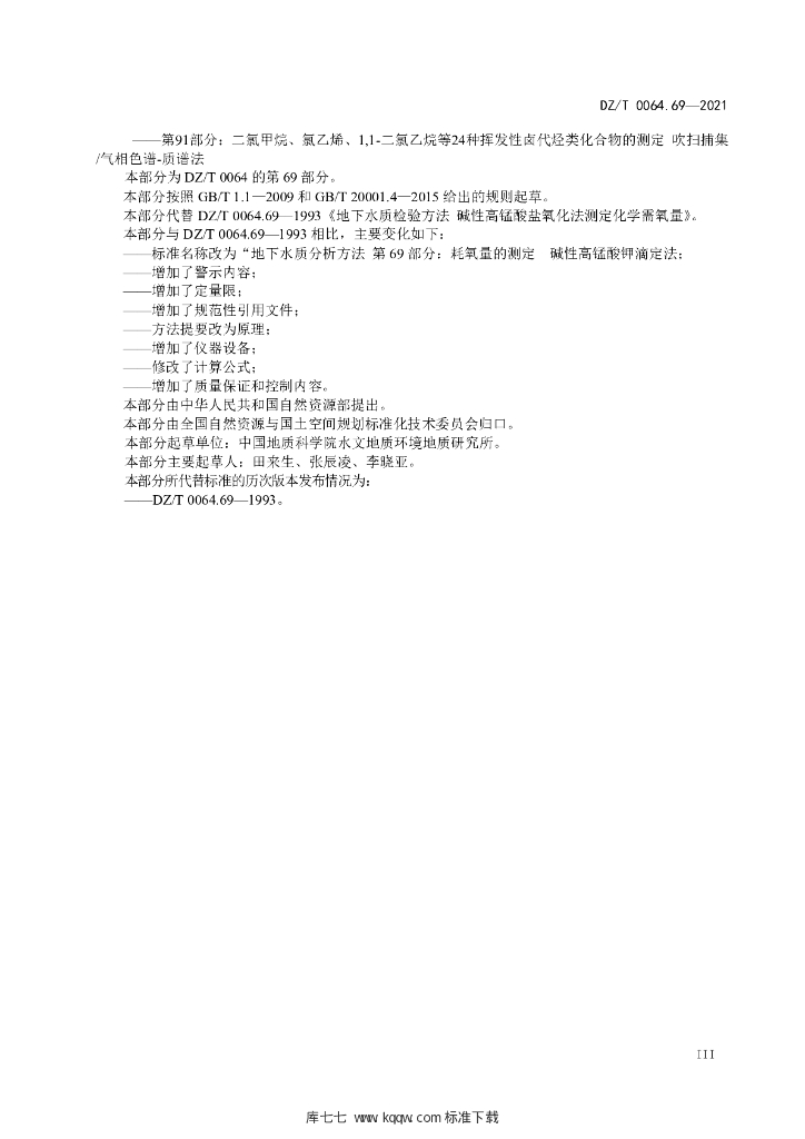 DZ/T 0064.69-2021 地下水质分析方法 第69部分:耗氧量的测定碱性高锰酸钾滴定法