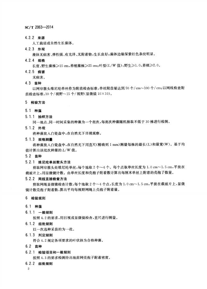 SC/T 2063-2014 条斑紫菜 种藻和苗种