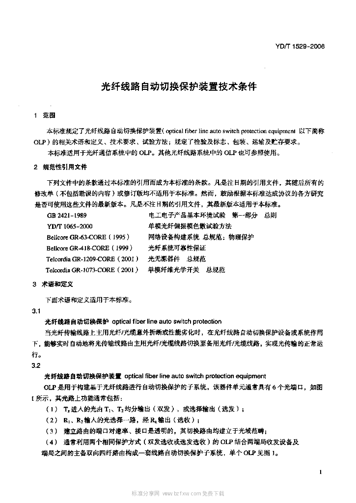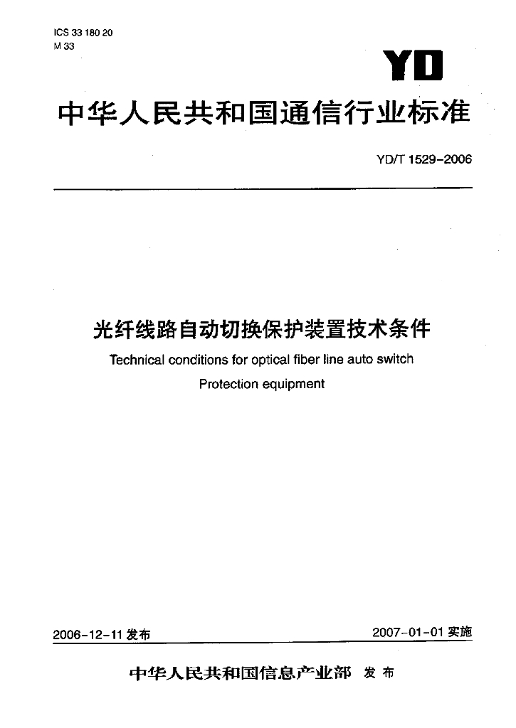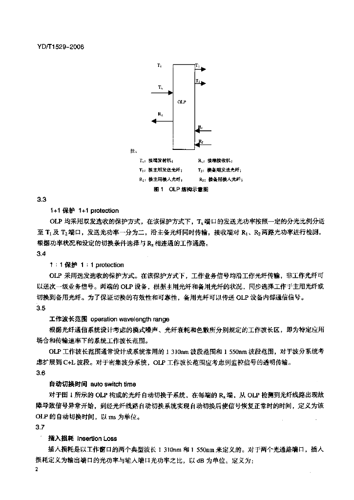 YD/T 1529-2006 光纤线路自动切换保护装置技术条件