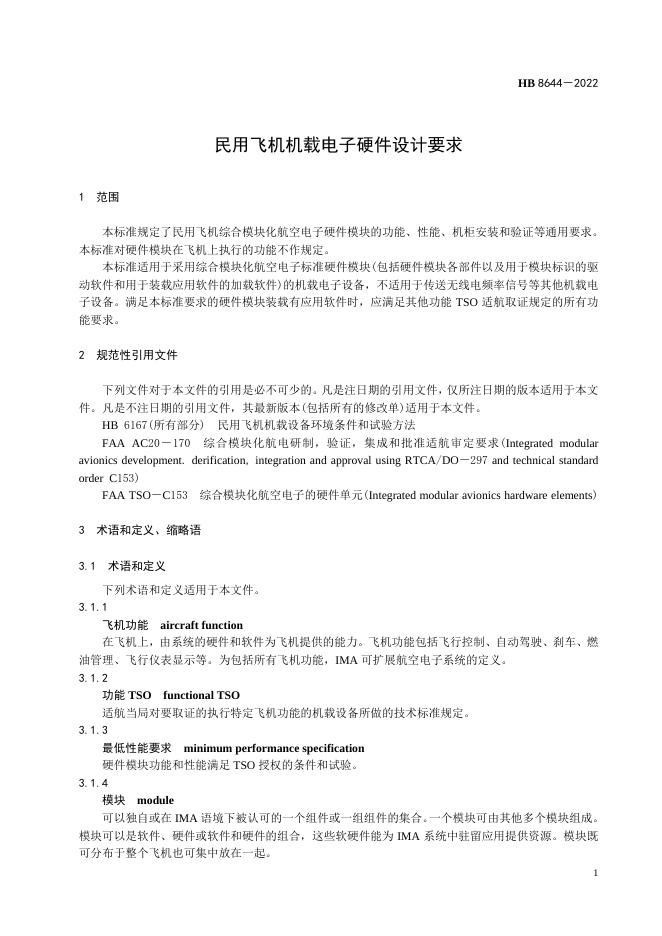 HB 8644-2022 民用飞机机载电子硬件设计要求