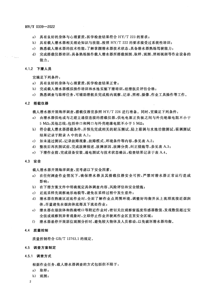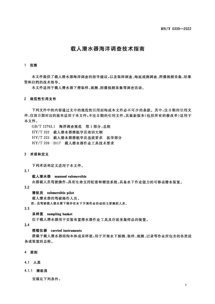 HY/T 0339-2022 载人潜水器海洋调查技术指南