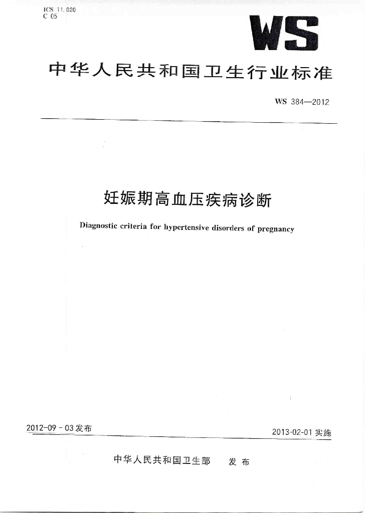 WS 384-2012 妊娠期高血压疾病诊断