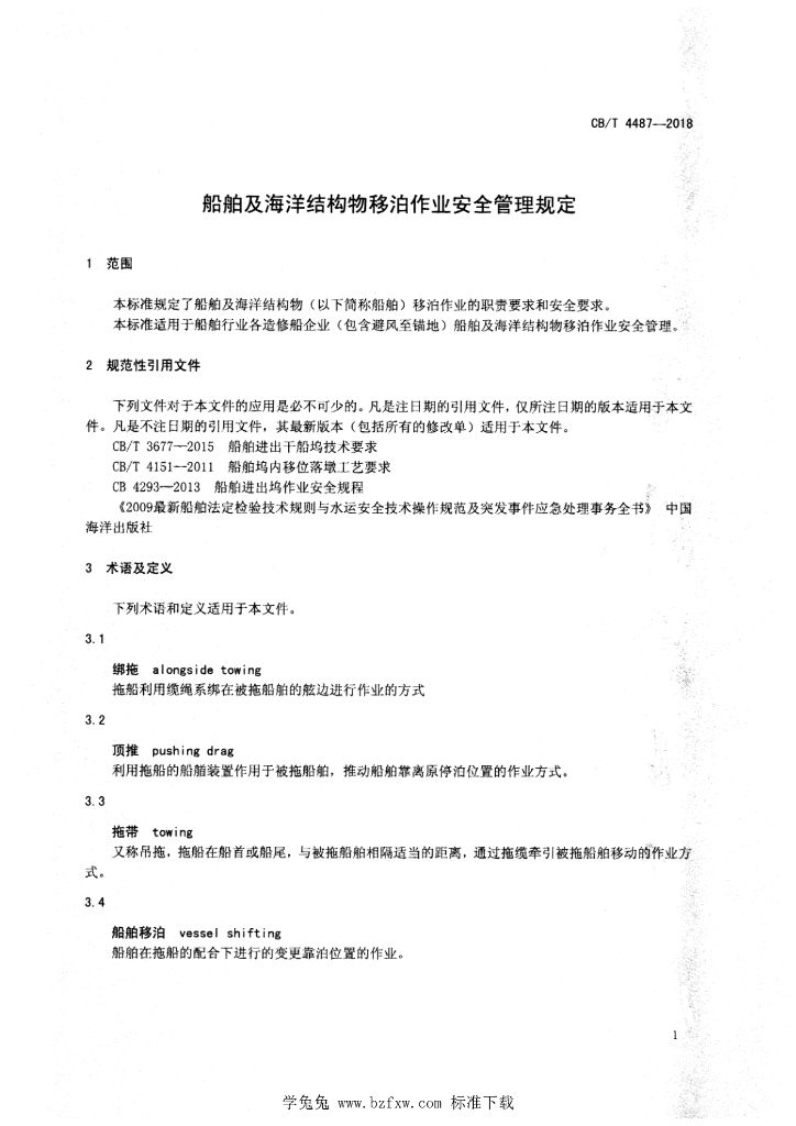 CB/T 4487-2018 船舶及海洋结构物移泊作业安全管理规定