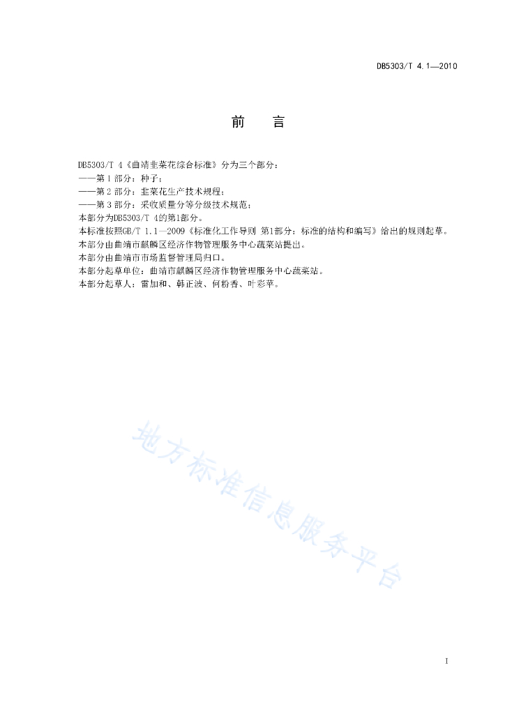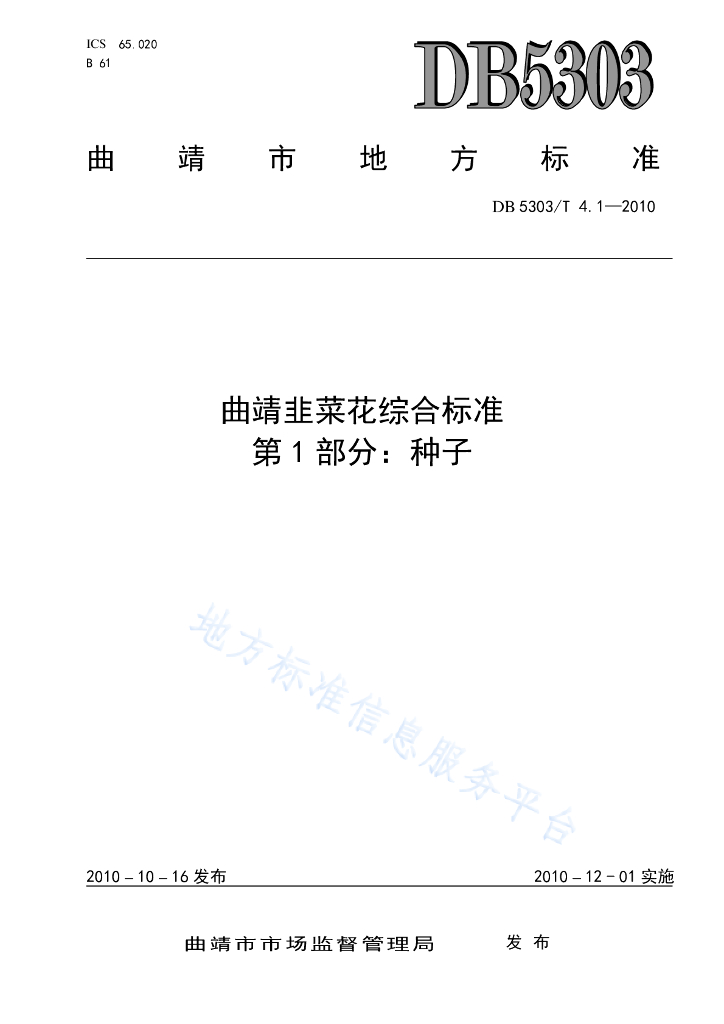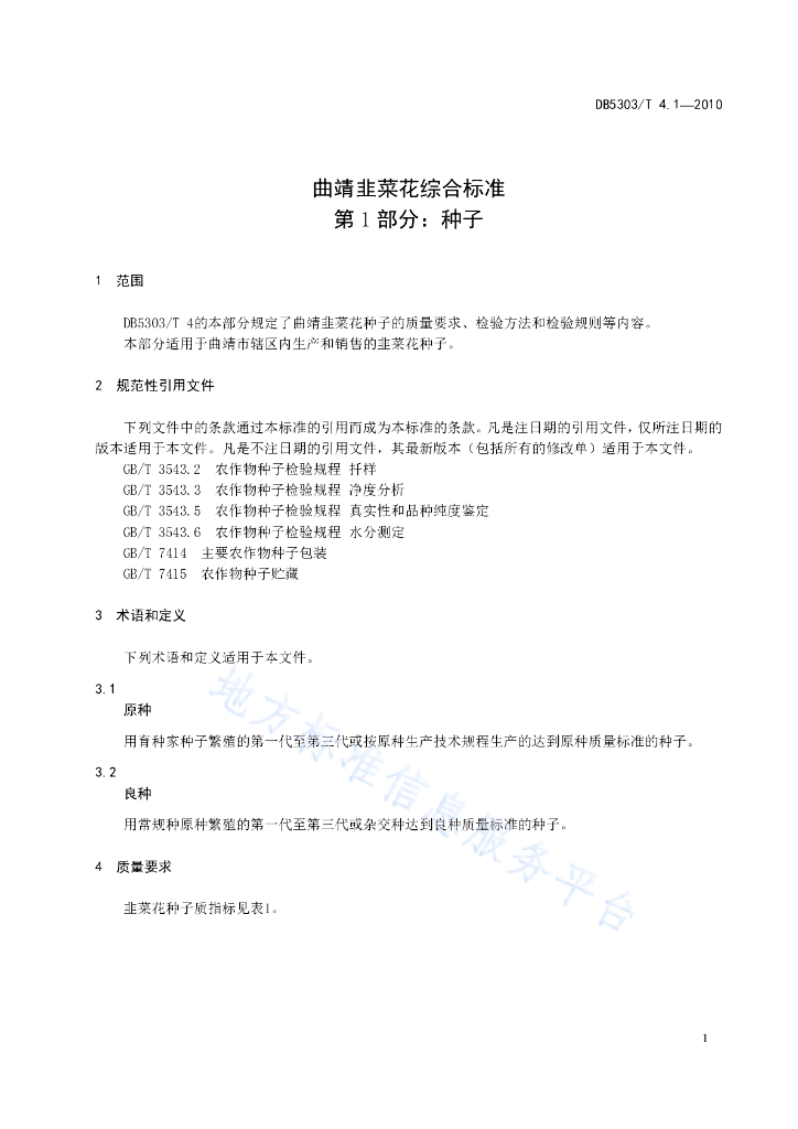 DB5303/T 4.1-2009 曲靖韭菜花综合标准第1部分:种子