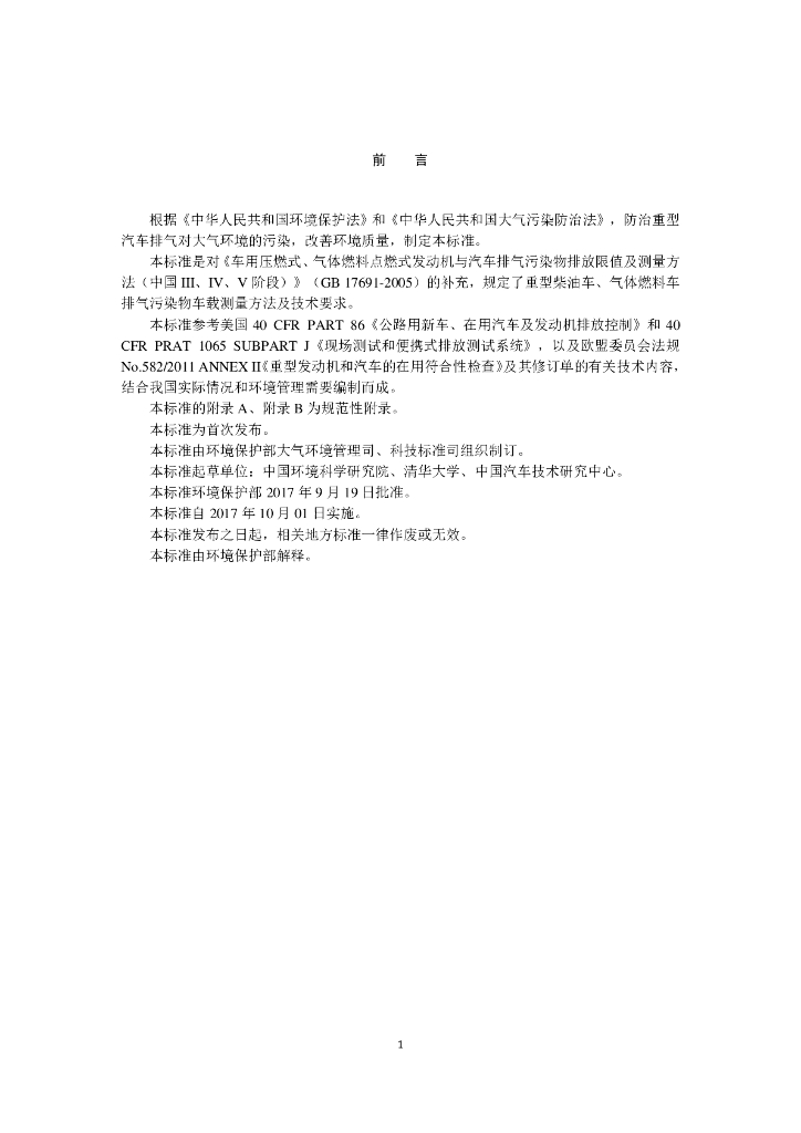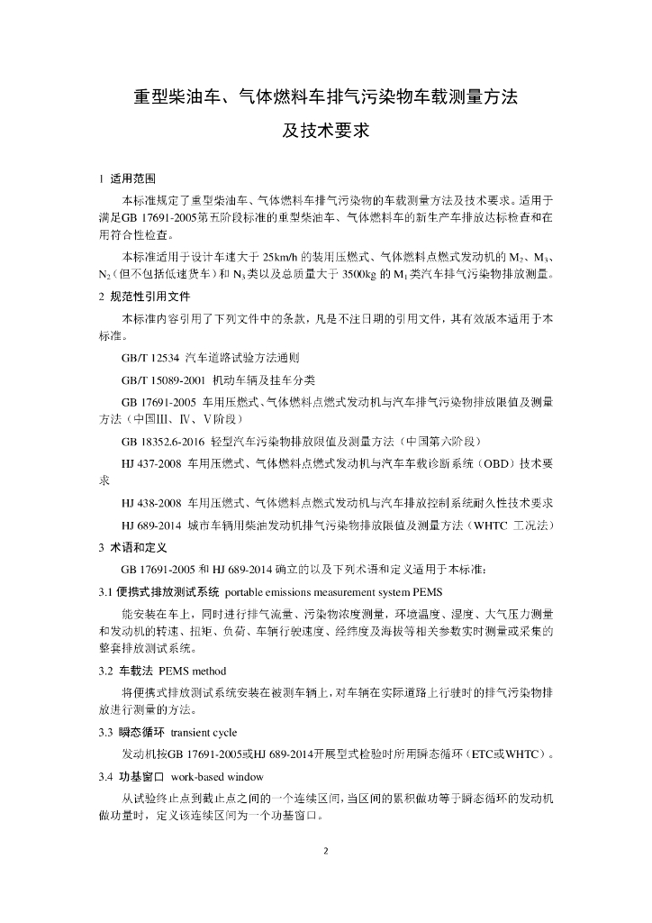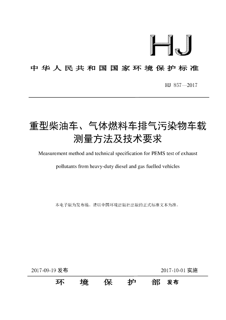 HJ 857-2017 重型柴油车、气体燃料车排气污染物车载测量方法及技术要求
