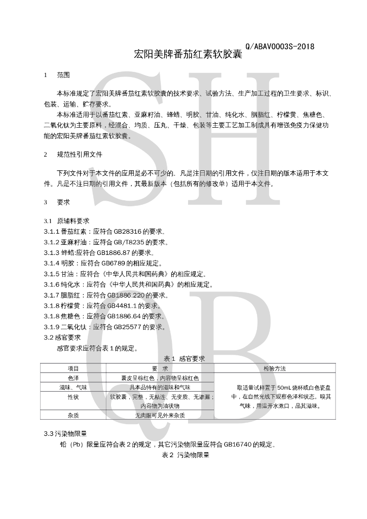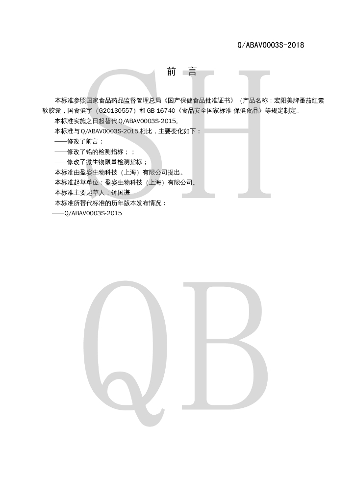 Q/ABAV 0003S-2018 宏阳美牌番茄红素软胶囊