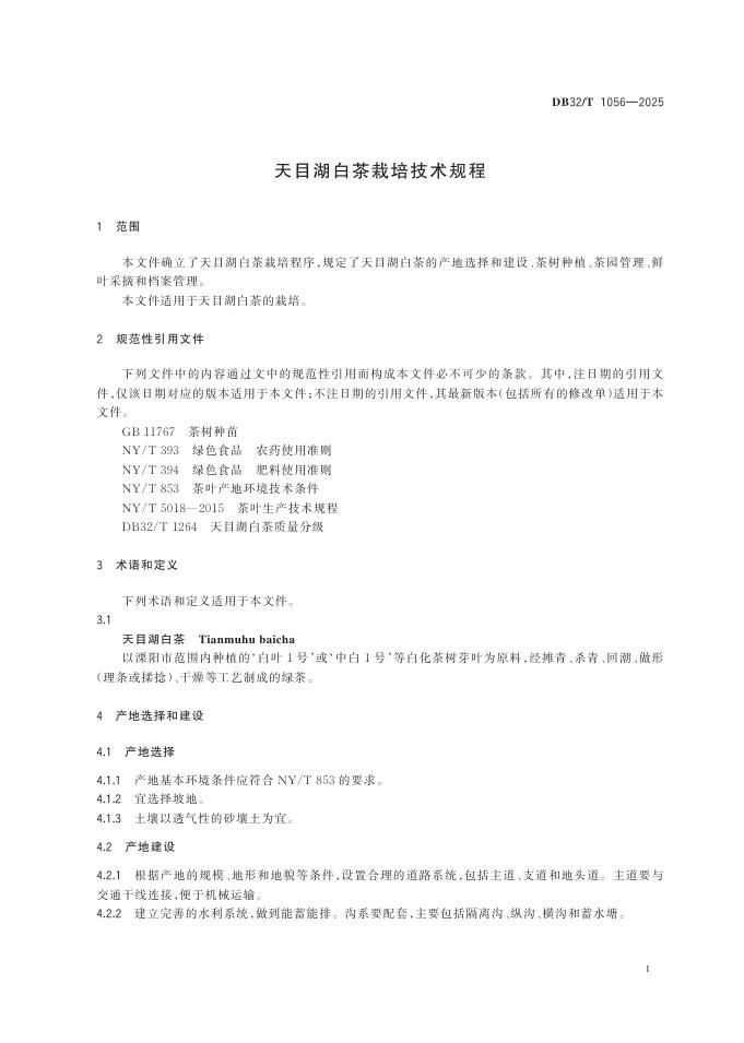 DB32/T 1056-2025 天目湖白茶栽培技术规程
