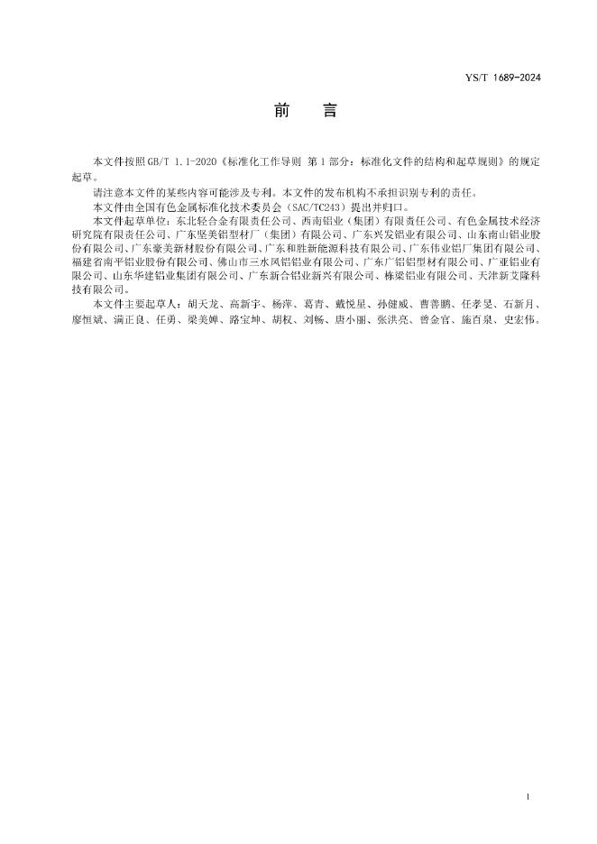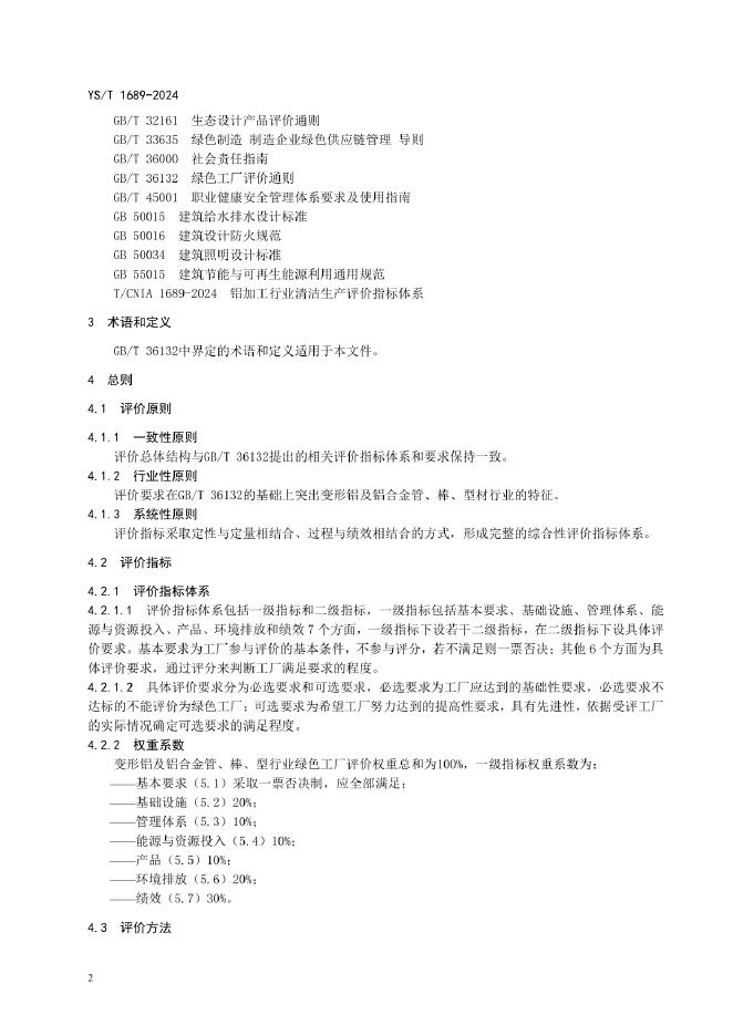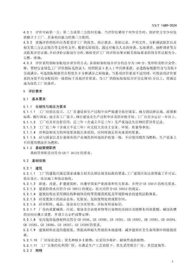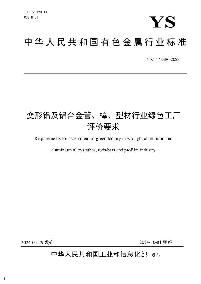 YS/T 1689-2024 变形铝及铝合金管、棒、型材行业绿色工厂评价要求